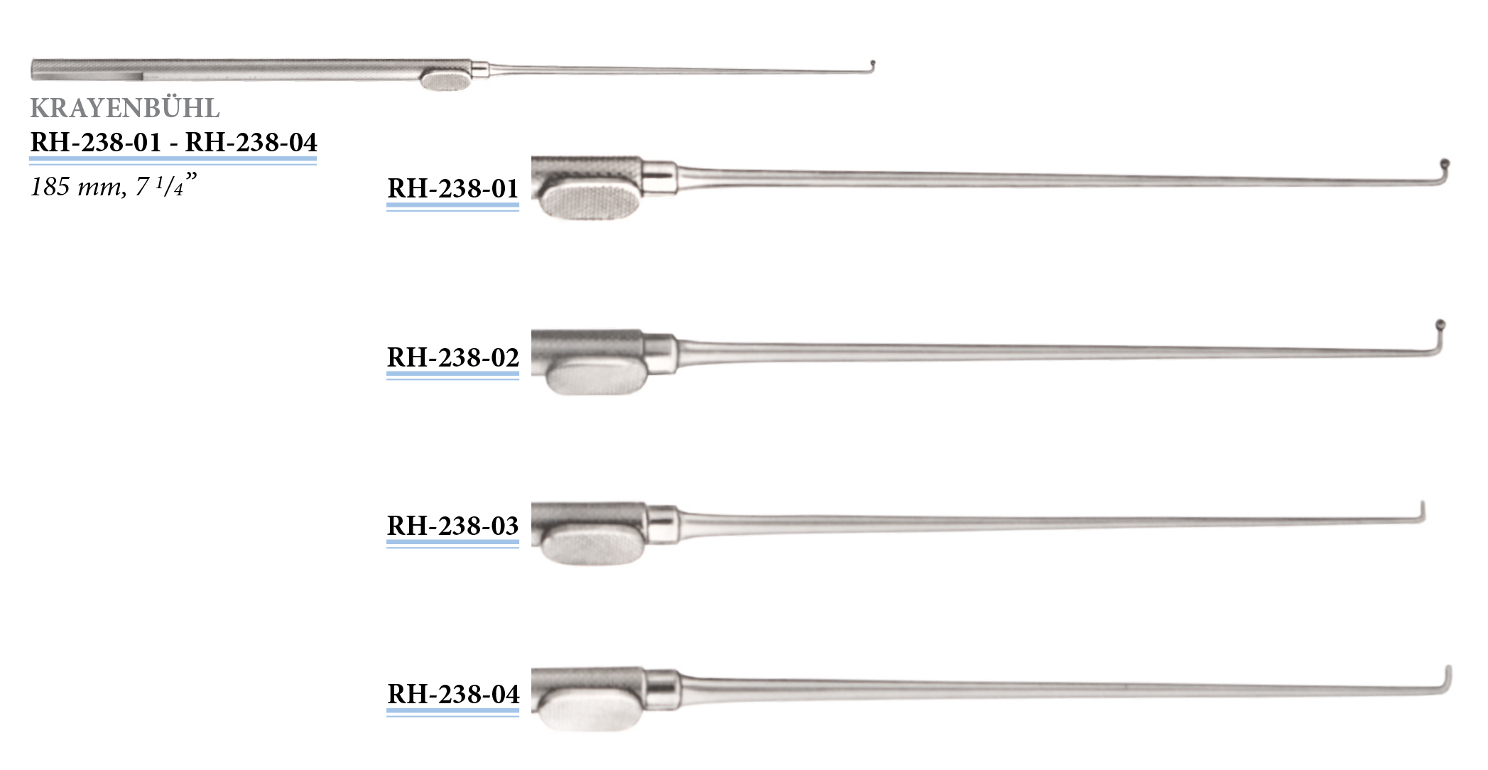 RH-238-01 Krayenbühl ideg- és érkampó, gombos végű, 185 mm