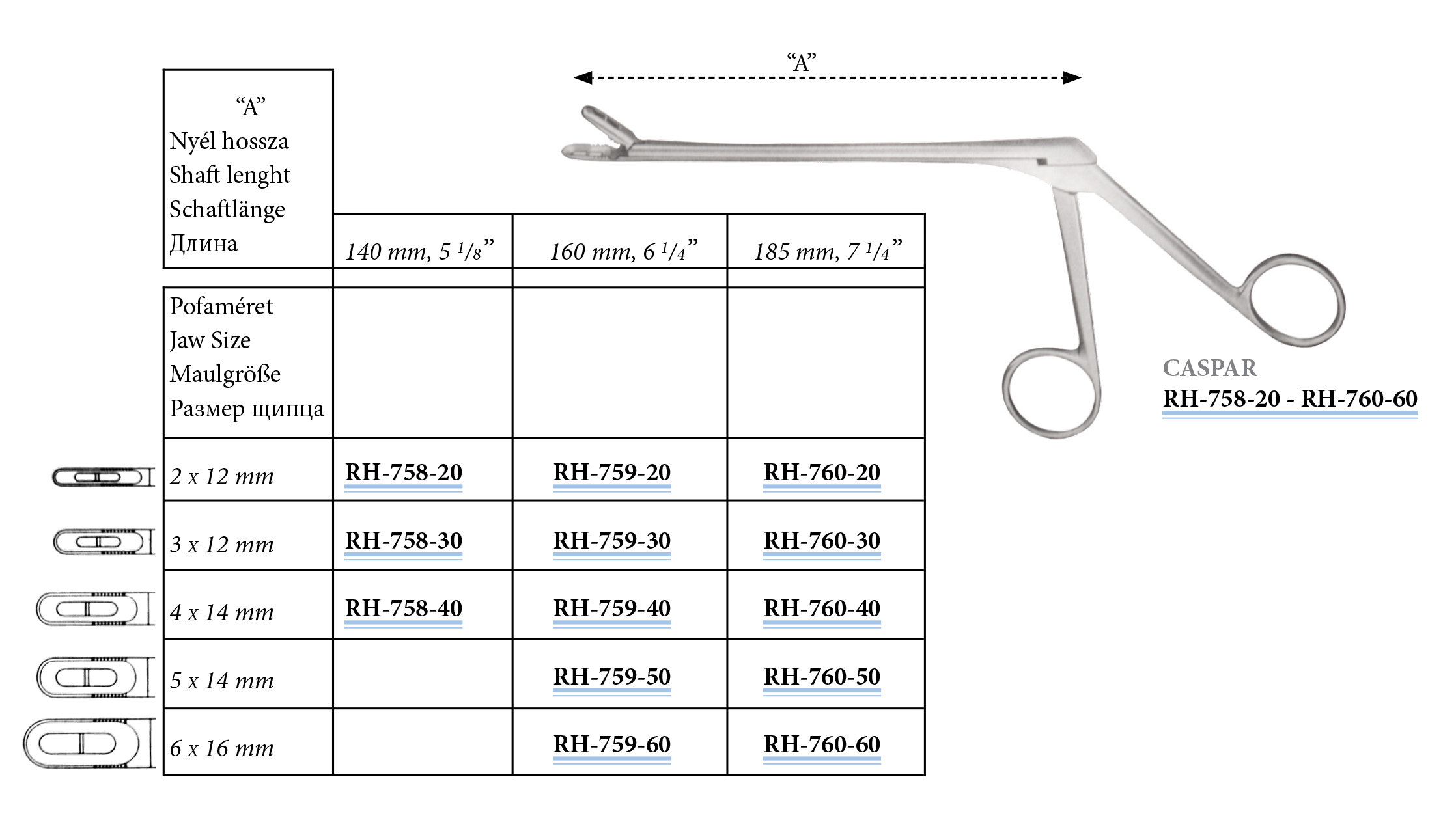 RH-760-60 Caspar csontcsípő, egyenes, 6x16 mm, 185 mm