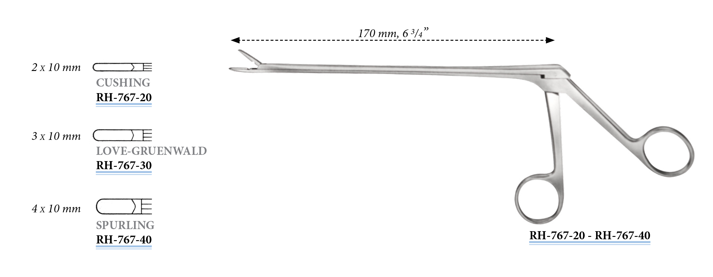 RH-768-40 Love-Gruenwald csontcsípő, 150°, felfelé hajló, 4x10 mm, 170 mm
