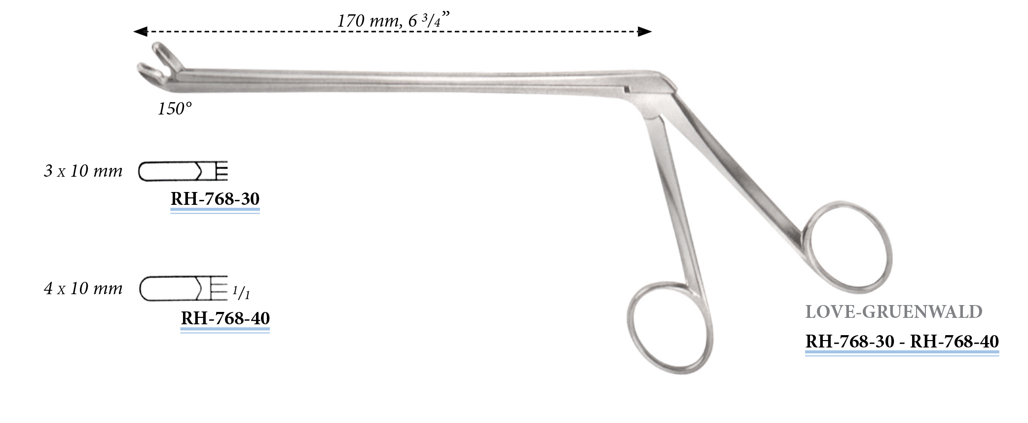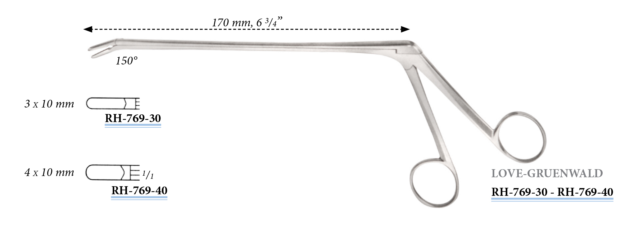 RH-769-40 Love-Gruenwald csontcsípő, 150°, lefelé hajló, 4x10 mm, 170 mm