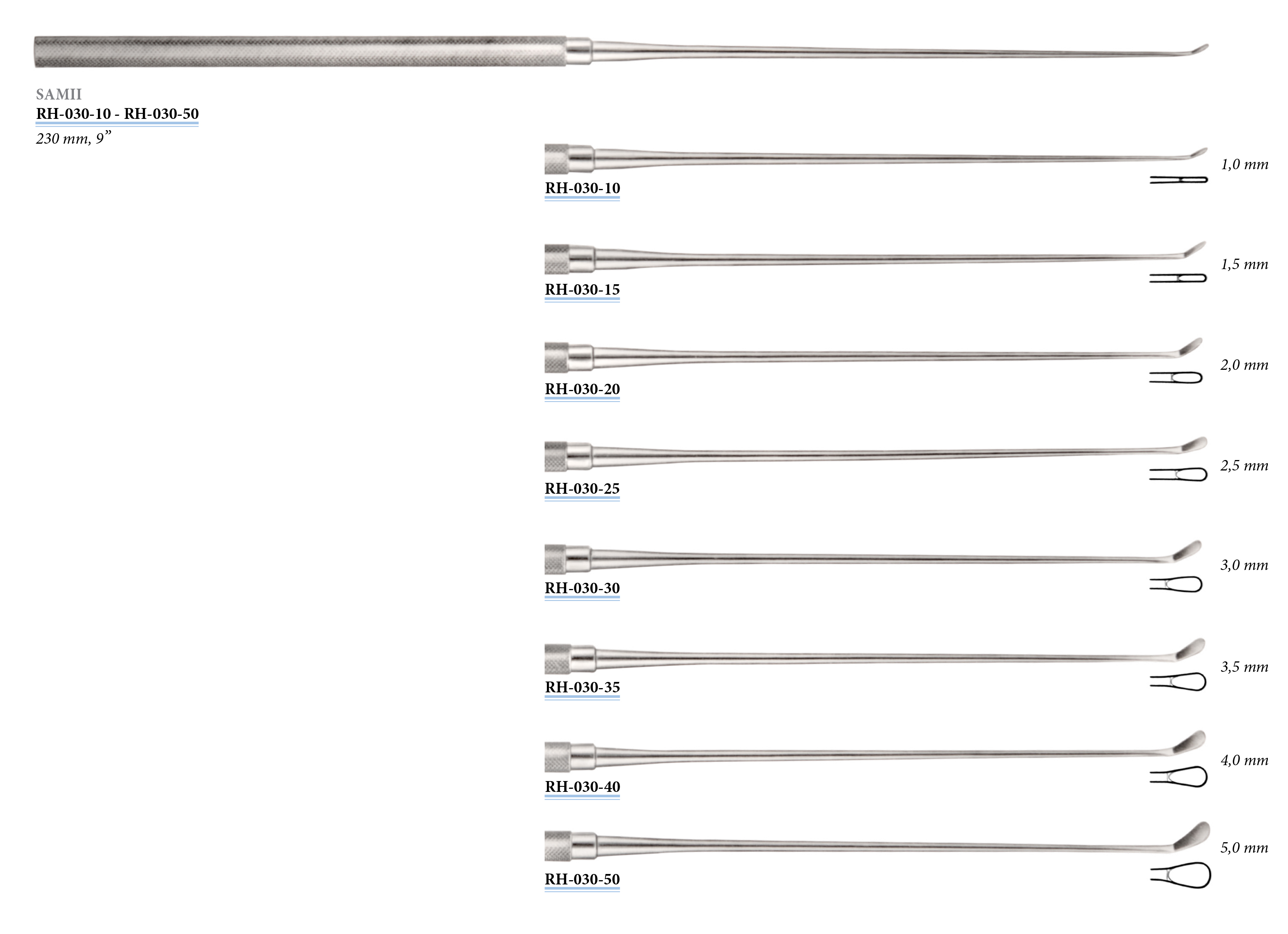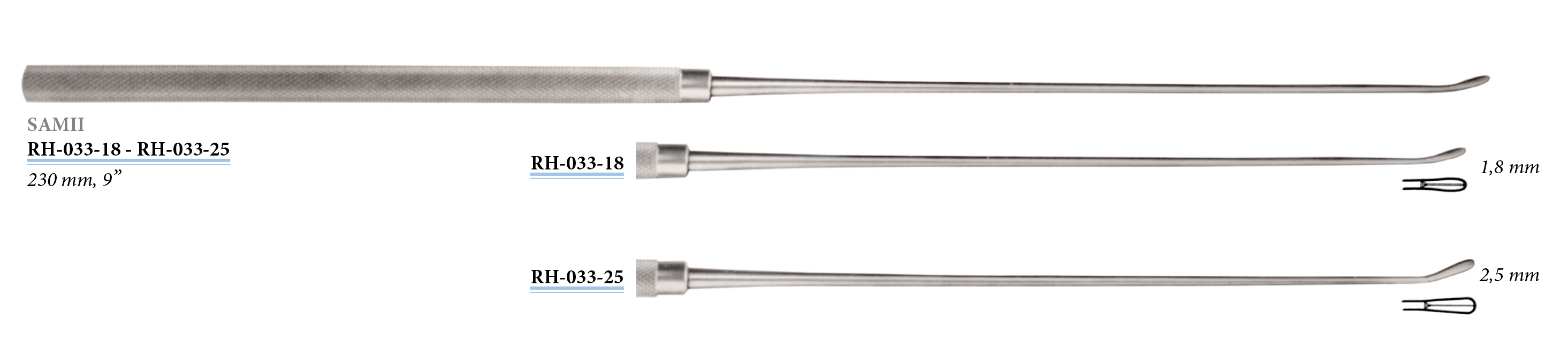 RH-030-25 Samii tumorkés,hajlított, 2,5 mm, 230 mm