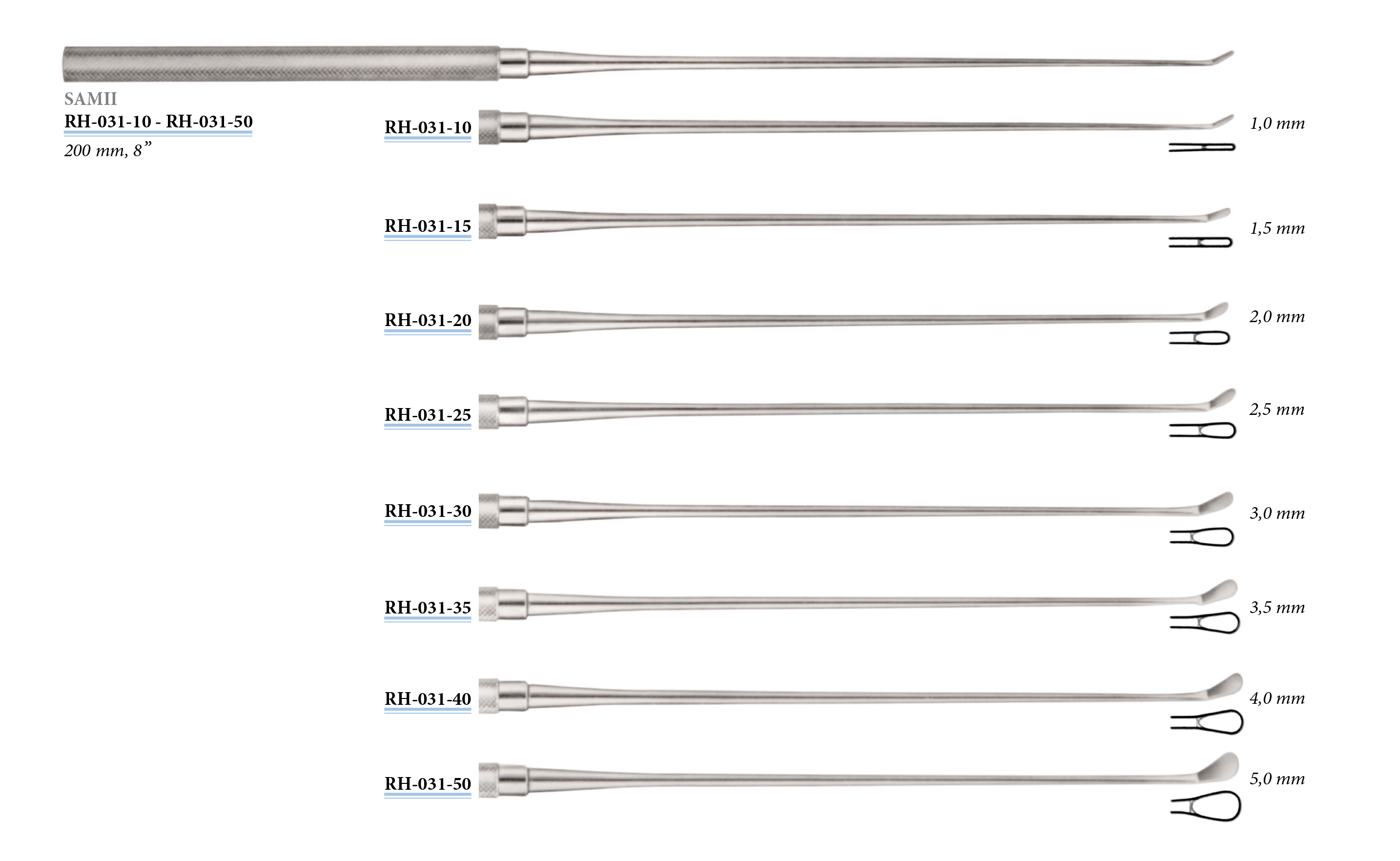 RH-031-25 Samii tumorkés,hajlított, 2,5 mm, 200 mm