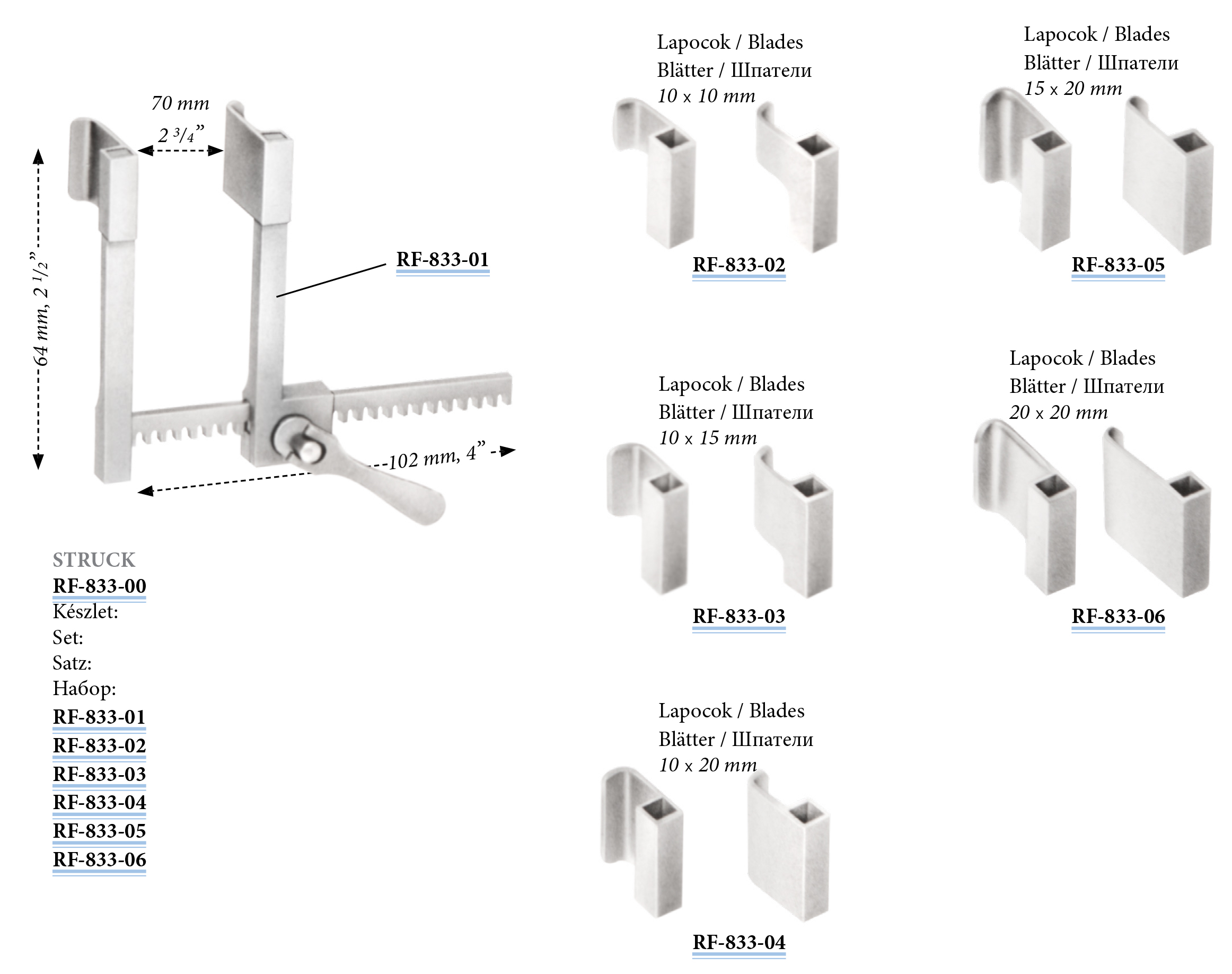 RF-804-00 Finochietto-Burford bordaterpesztő készlet, 220 mm