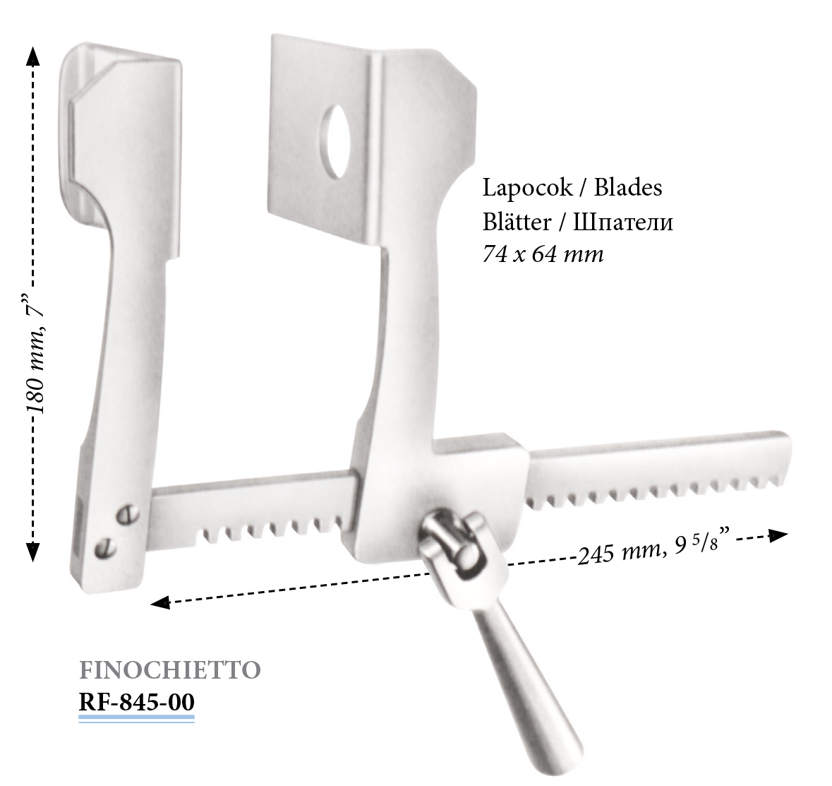 RF-845-00 Finochietto bordaterpesztő, lapoc: 74x64 mm, 180 mm