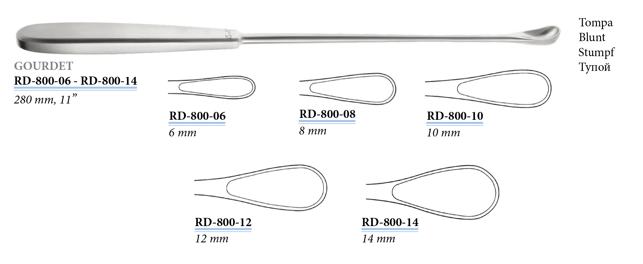 RD-800-10 Gourdet méhkanál, tompa, 10 mm, 280 mm