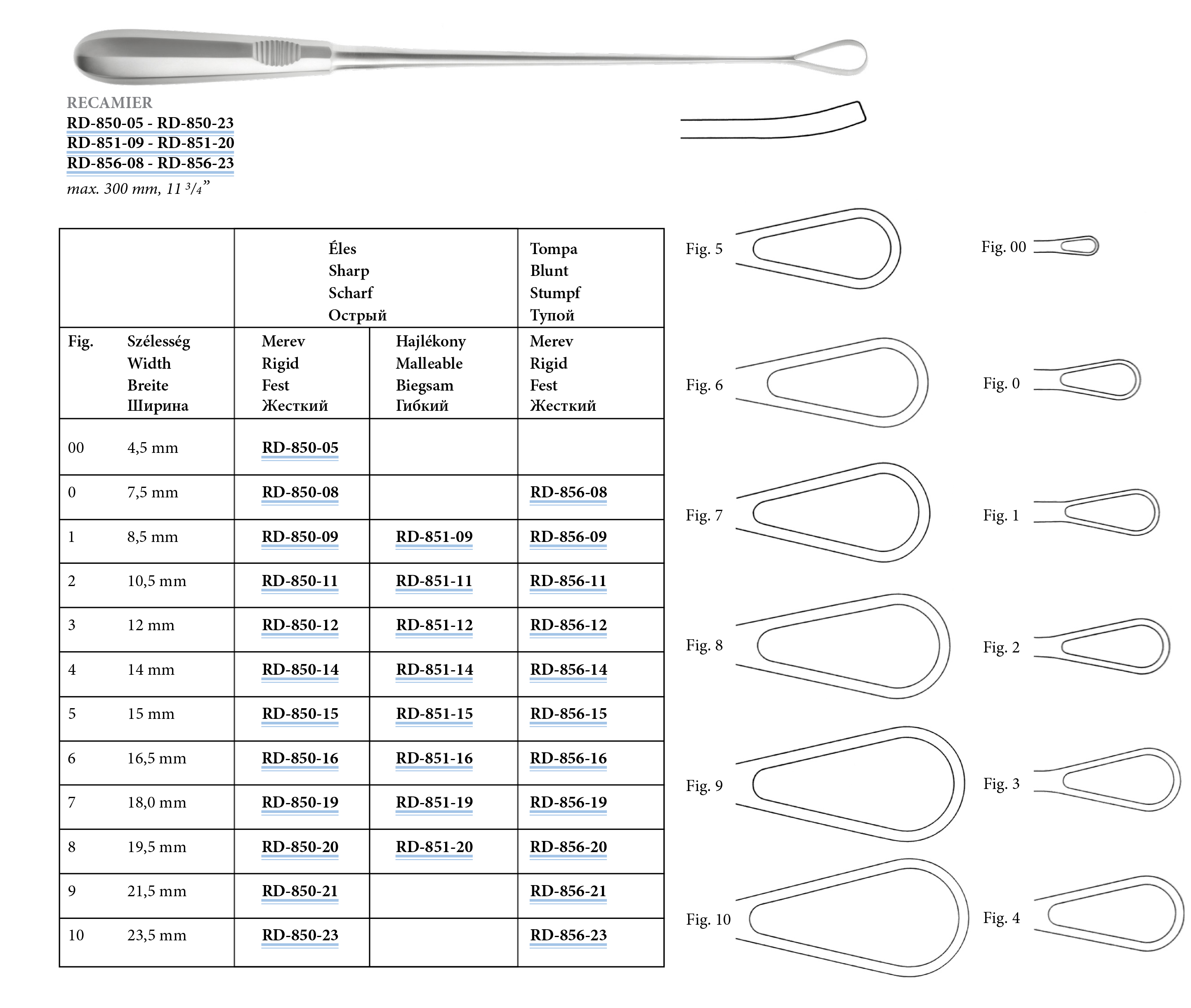 RD-851-11 Recamier méhkürett, hajlékony, éles, 10,5 mm, 300 mm