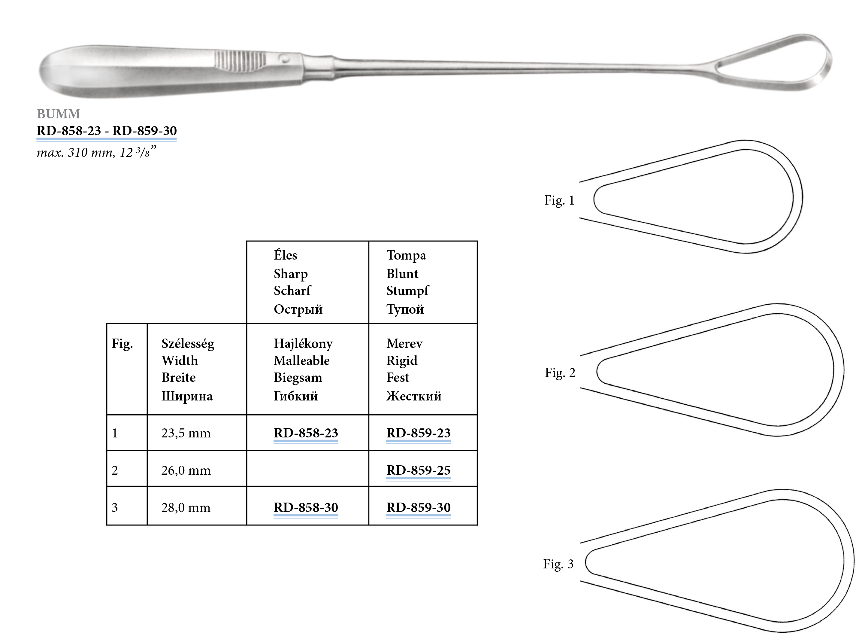 RD-881-24 Heaney méhkürettt, hajlított, recézett, 240 mm