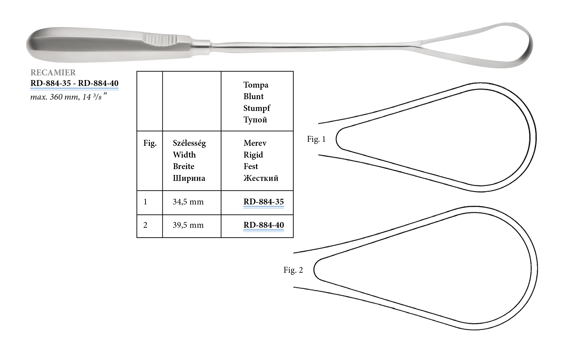 RD-884-40 Recamier méhkürett, merev, tompa, 39,5 mm, 360 mm