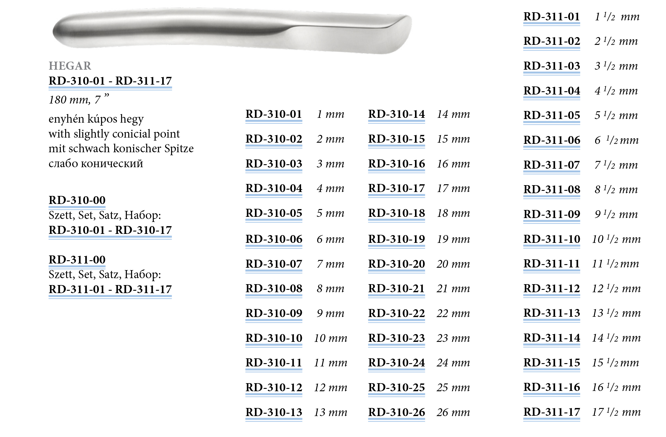 RD-310-00 Hegar méhnyak tágító készlet (RD-310-01 - RD-310-17, egész méret)