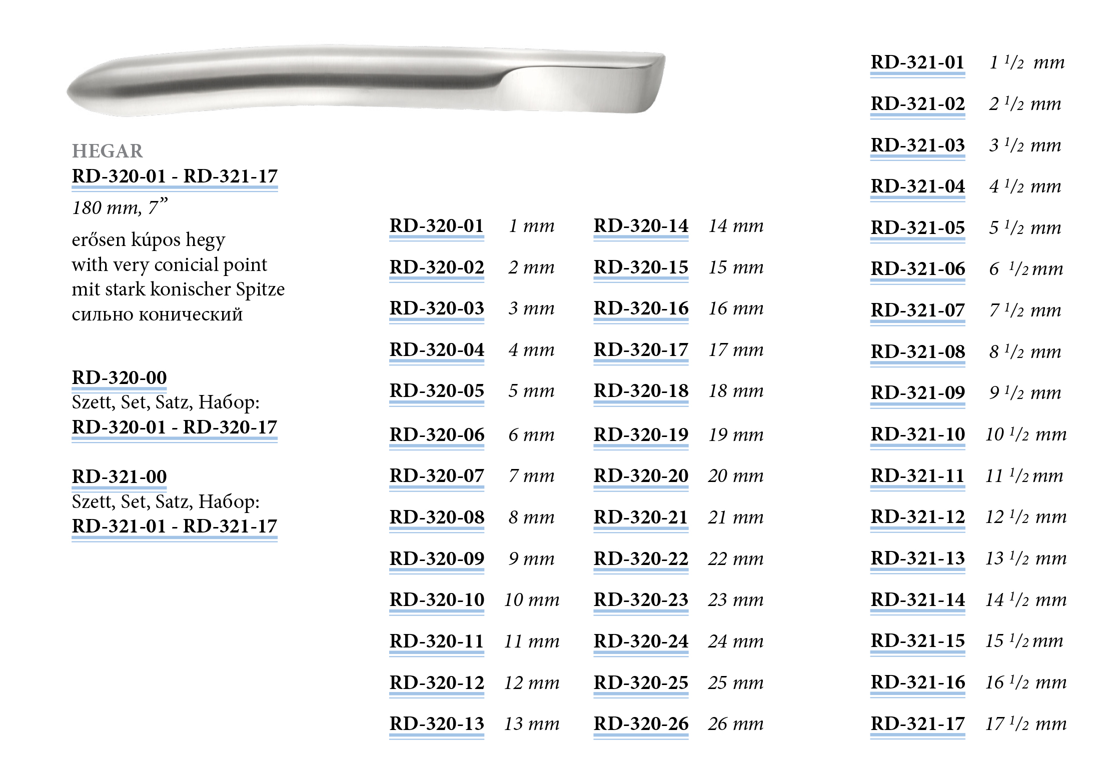 RD-320-00 Hegar méhnyak tágító készlet (RD-320-01 - RD-320-17, egész méret)