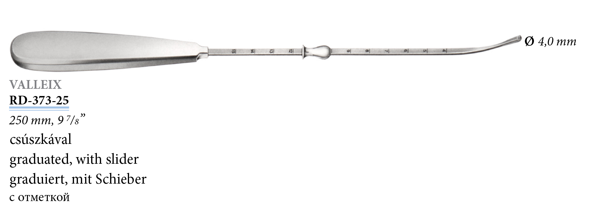 RD-373-25 Valleix méhszonda,csúszkával, d=4 mm, 250 mm