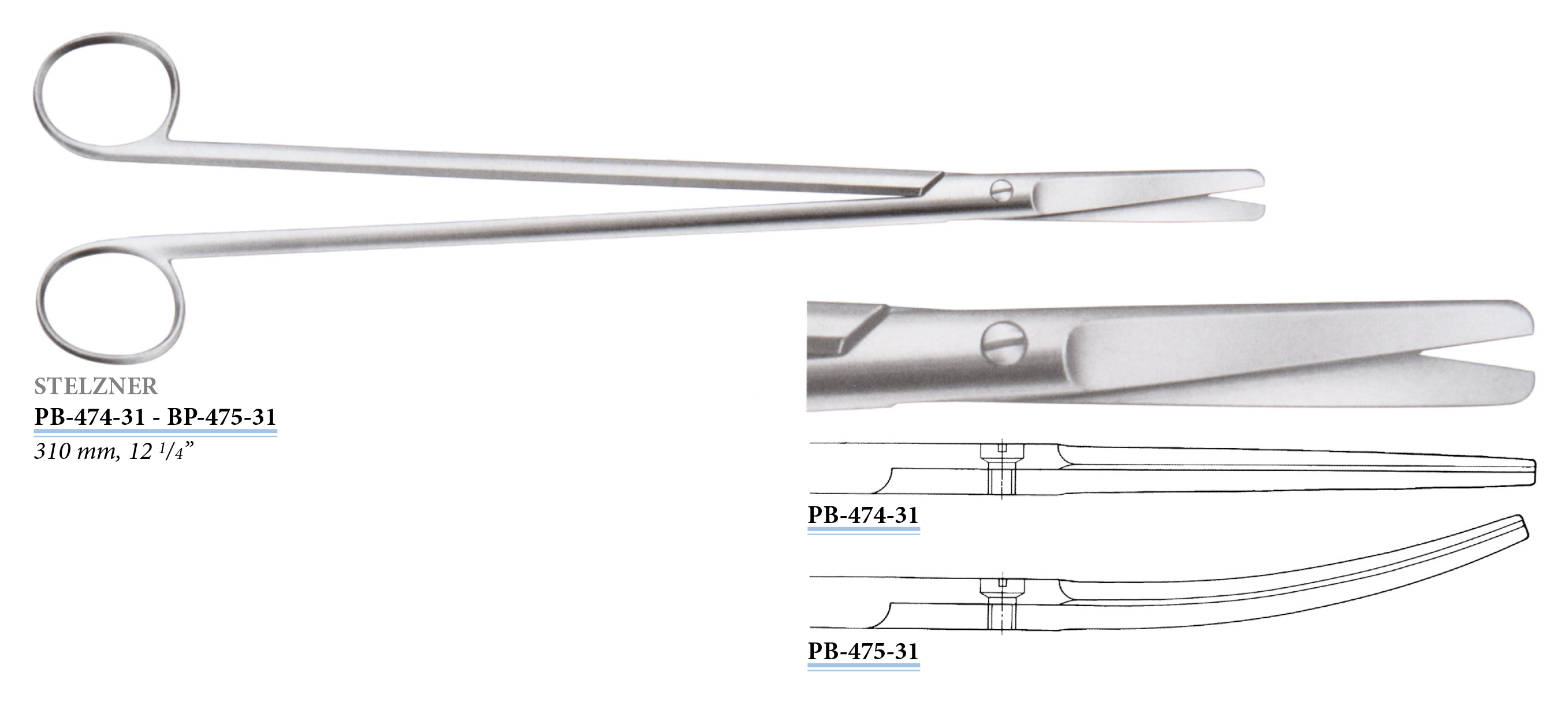 PB-474-31 Stelzner bélolló, egyenes, 310 mm