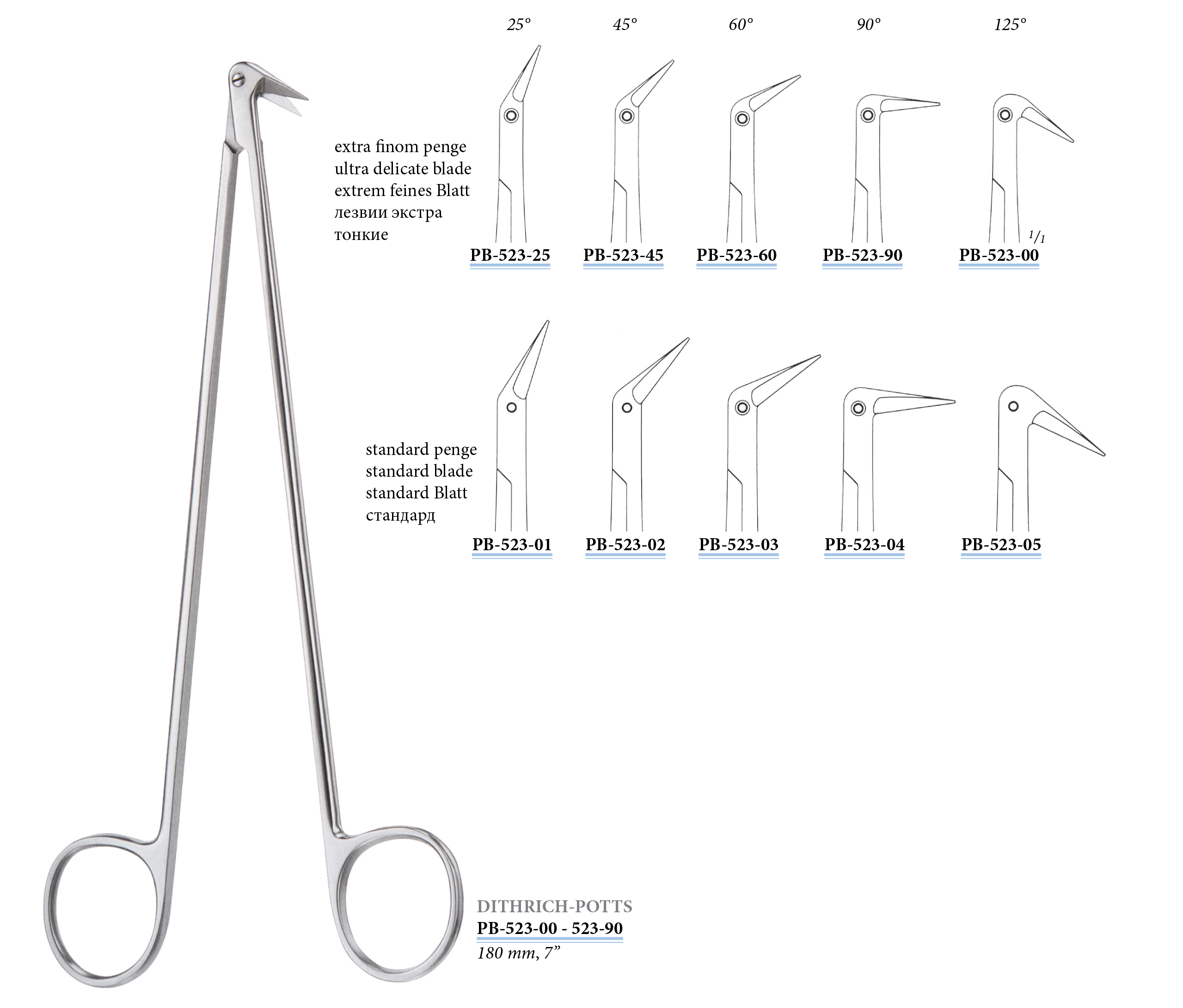 PB-523-03 Diethrich-Potts érolló, extra finom 60°, 180 mm