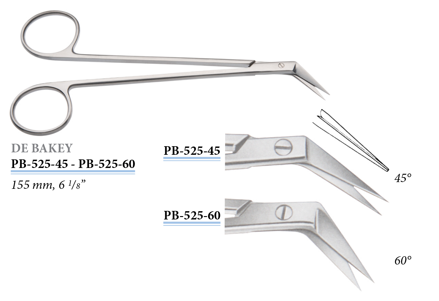 PB-525-60 DeBakey érolló, 60°, 155 mm