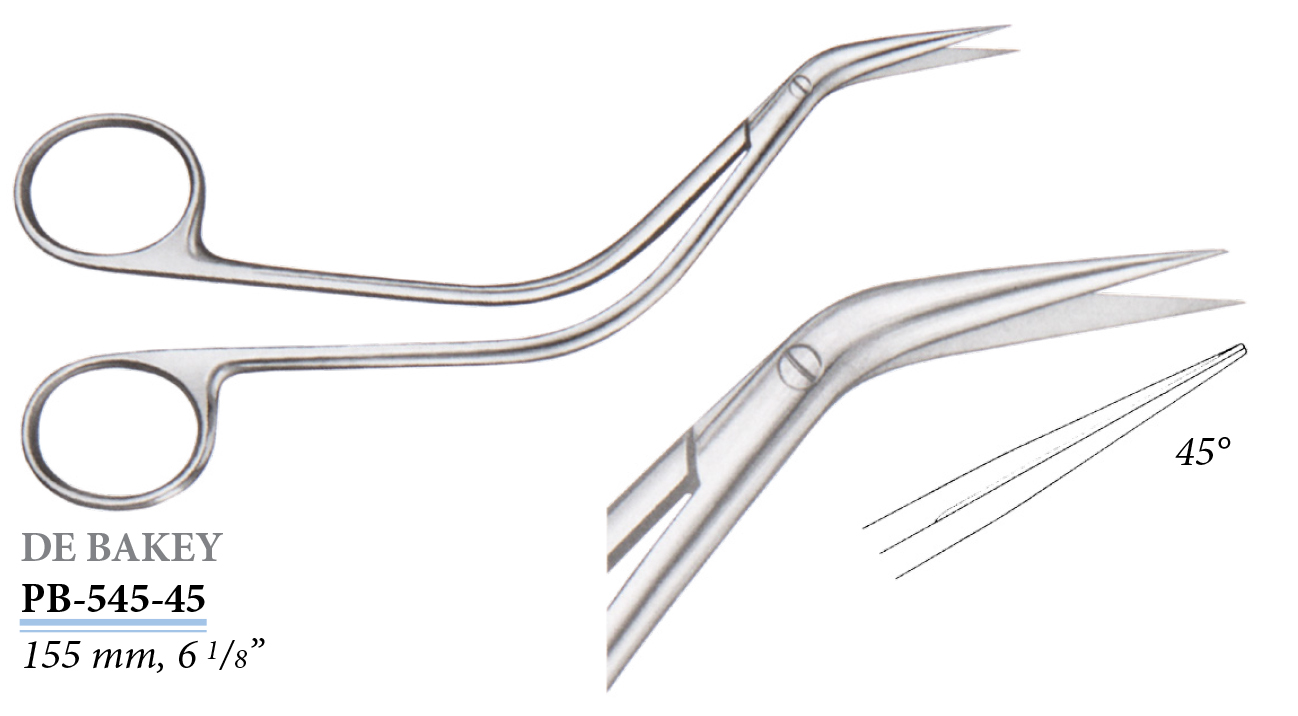 PB-525-45 DeBakey érolló, 45°, 155 mm