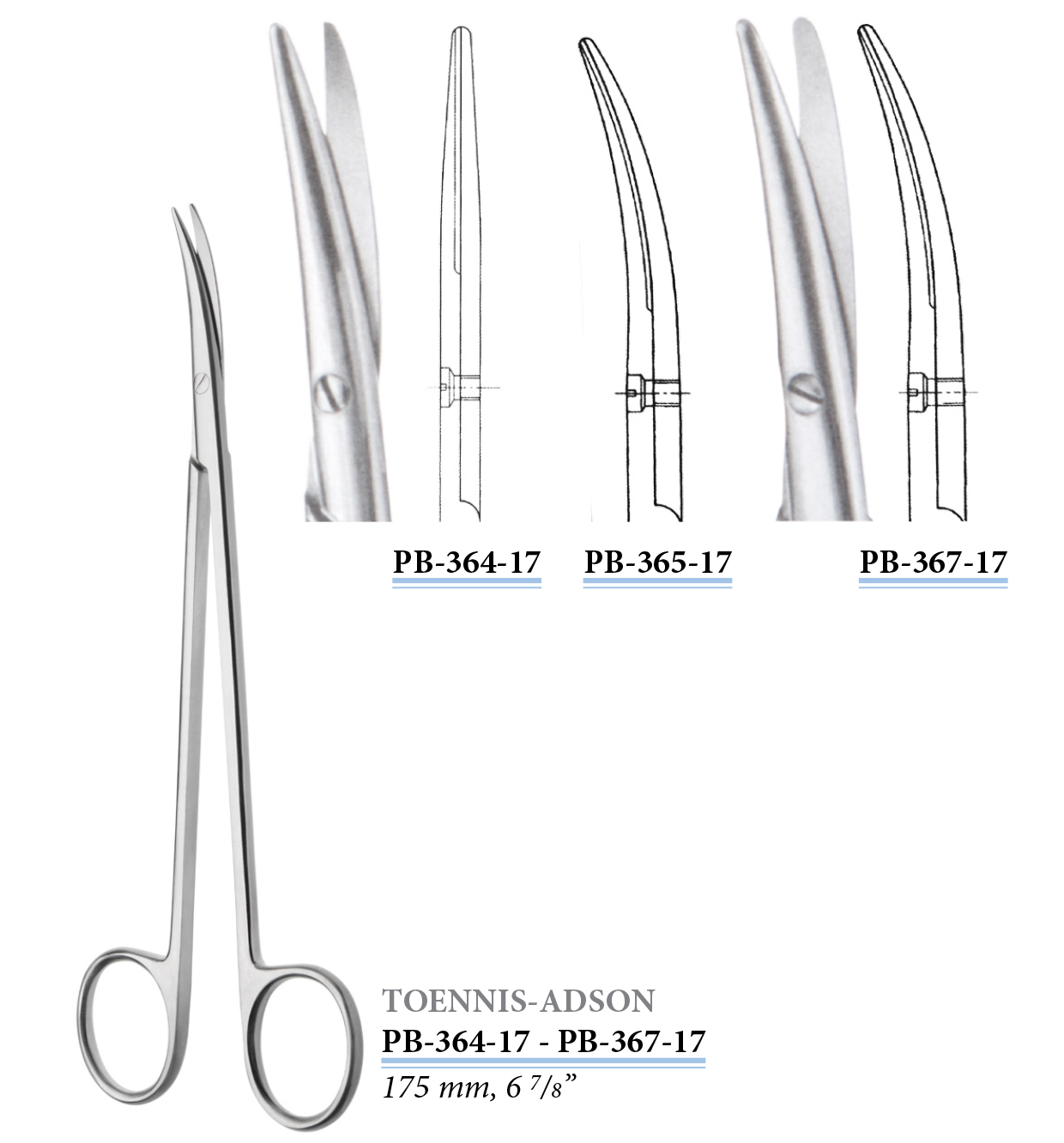 PB-365-17 Toennis-Adson finom preparáló olló, hajlított, tompa-tompa, 175 mm