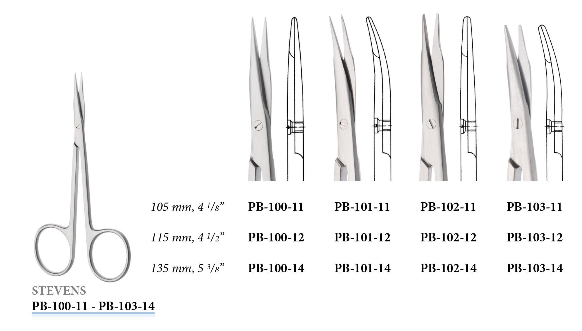 PB-102-11 Stevens ér- és ínolló olló, egyenes, tompa-tompa, 105 mm