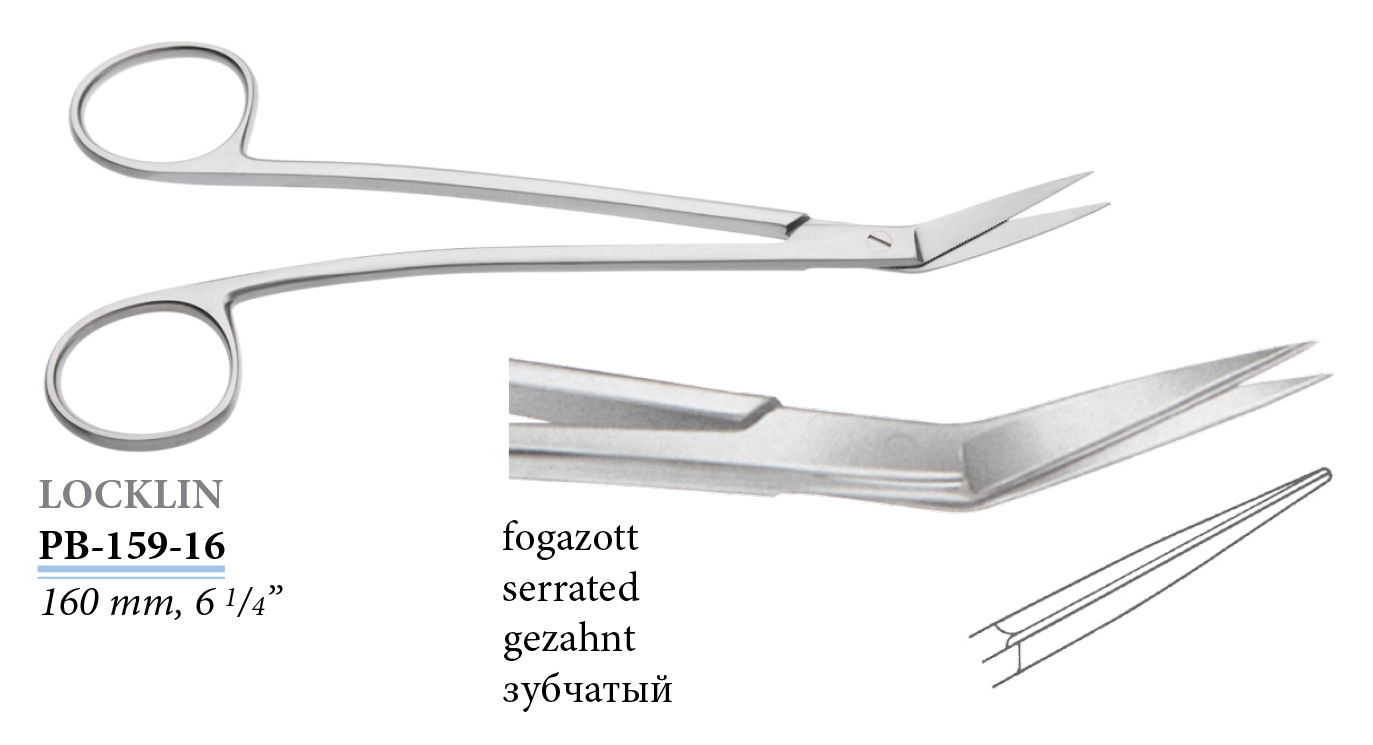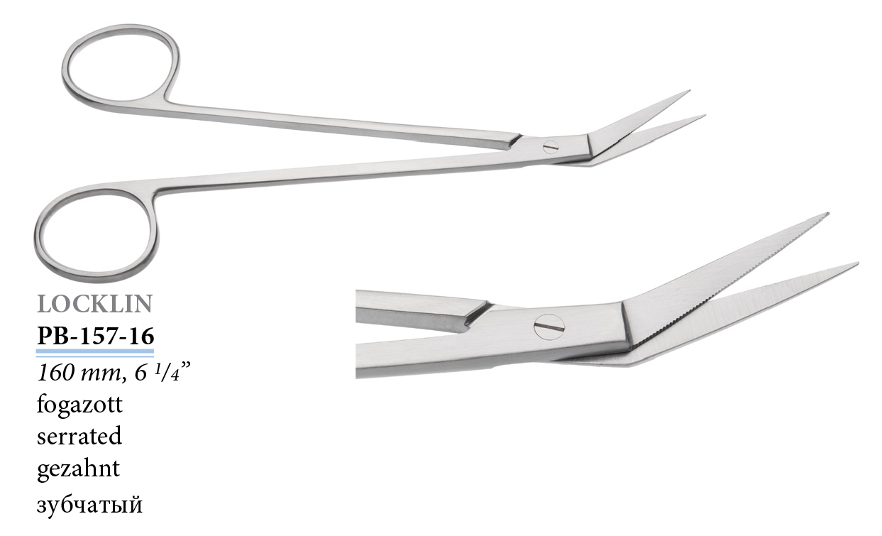 PB-157-16 Locklin finom sebészeti olló, könyök hajlású, 160 mm