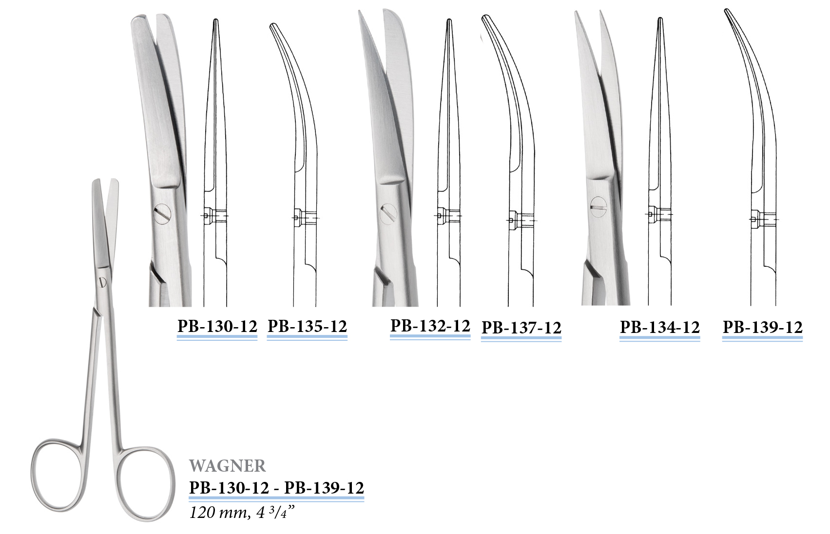 PB-132-12 Wagner foghús olló, egyenes, tompa-hegyes, 120 mm