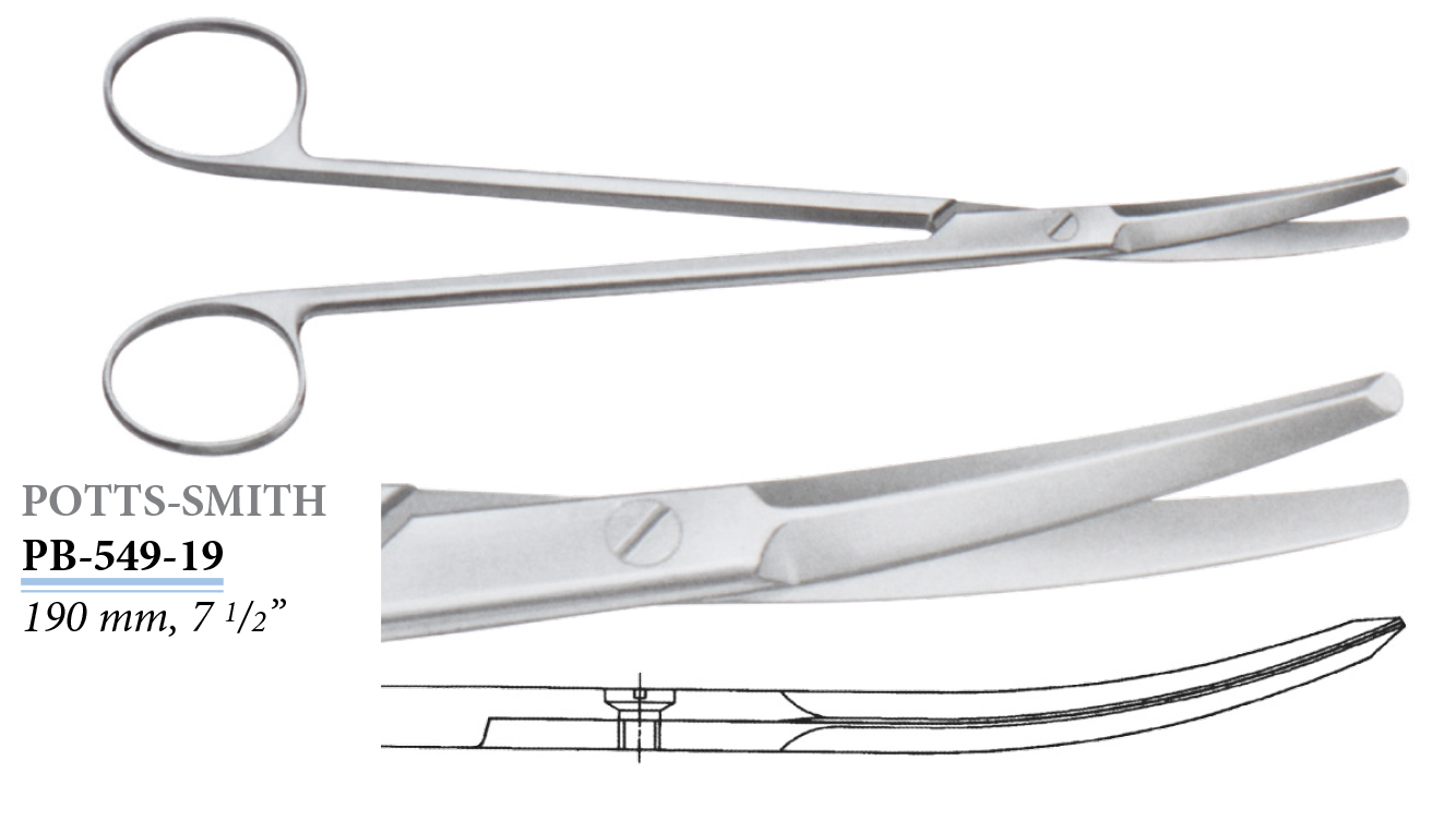 PB-549-19 Potts-Smith olló, hajlított, fogazott,190 mm
