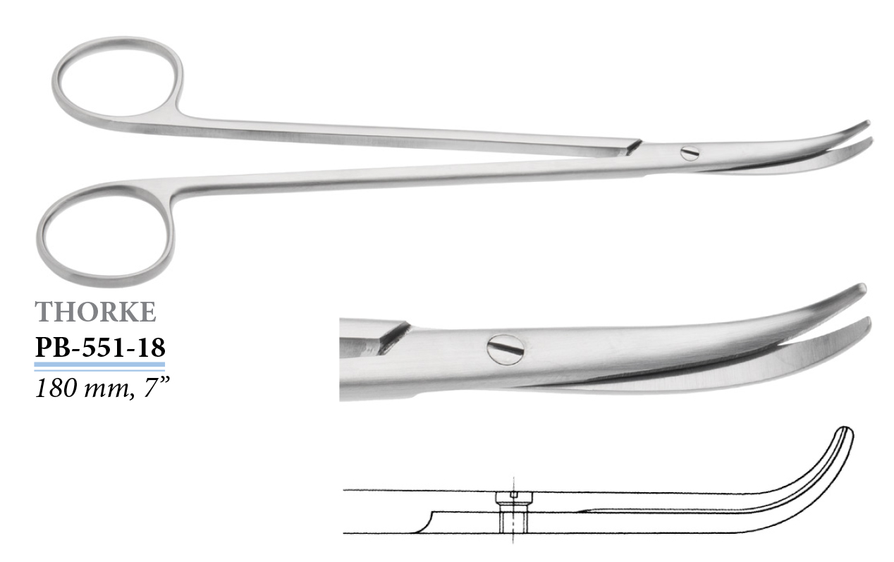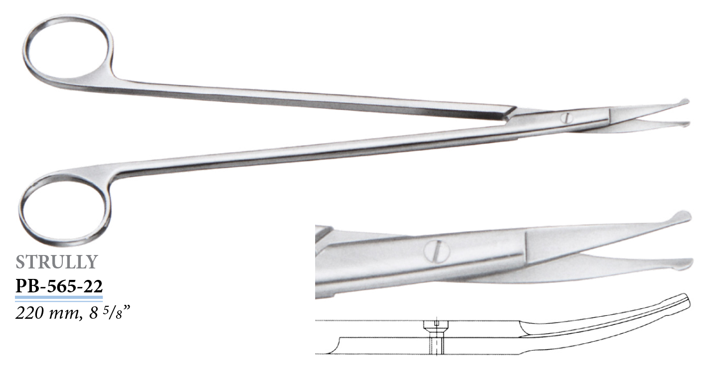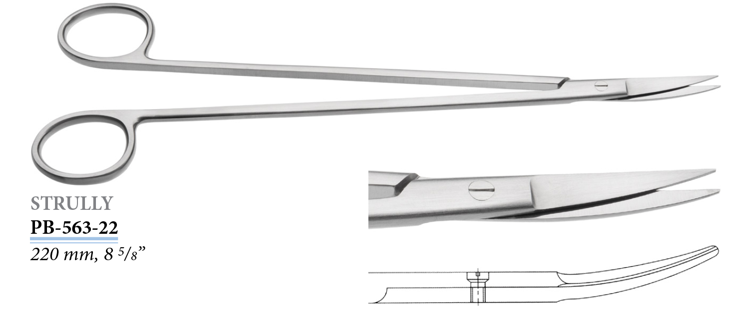 PB-563-22 Strully érsebészeti olló, hajlított, 220 mm