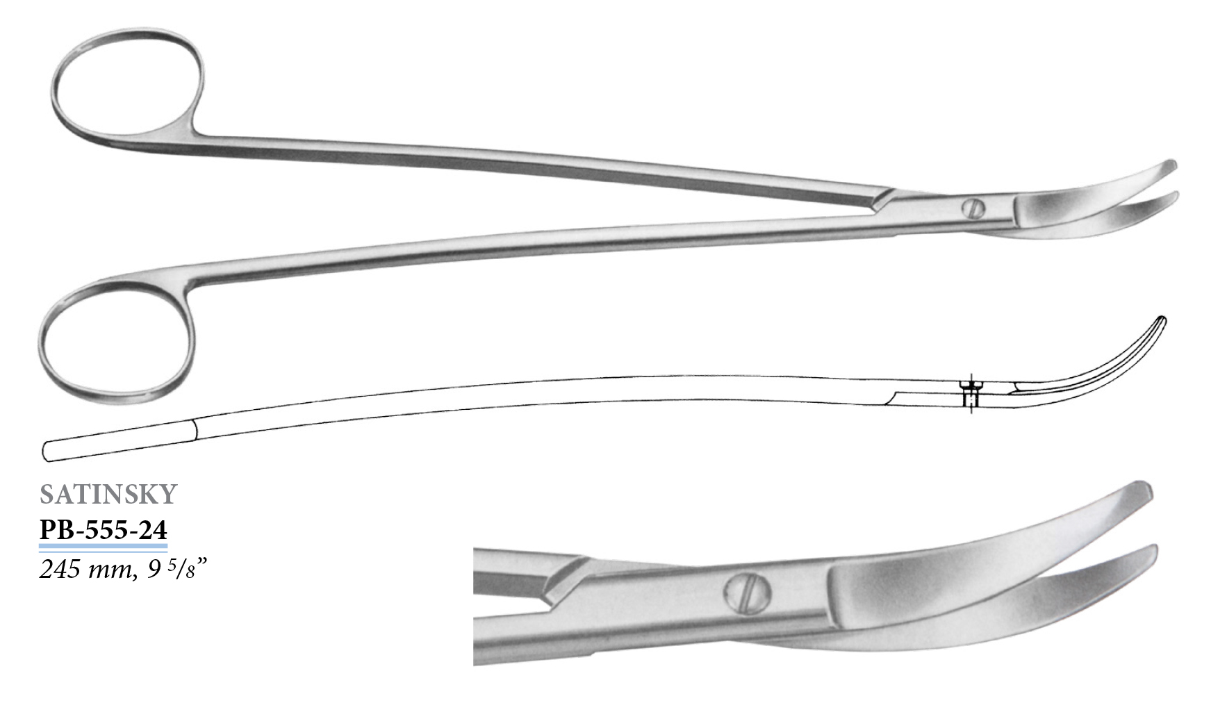 PB-555-24 Satinsky véna olló, hajlított, 245 mm