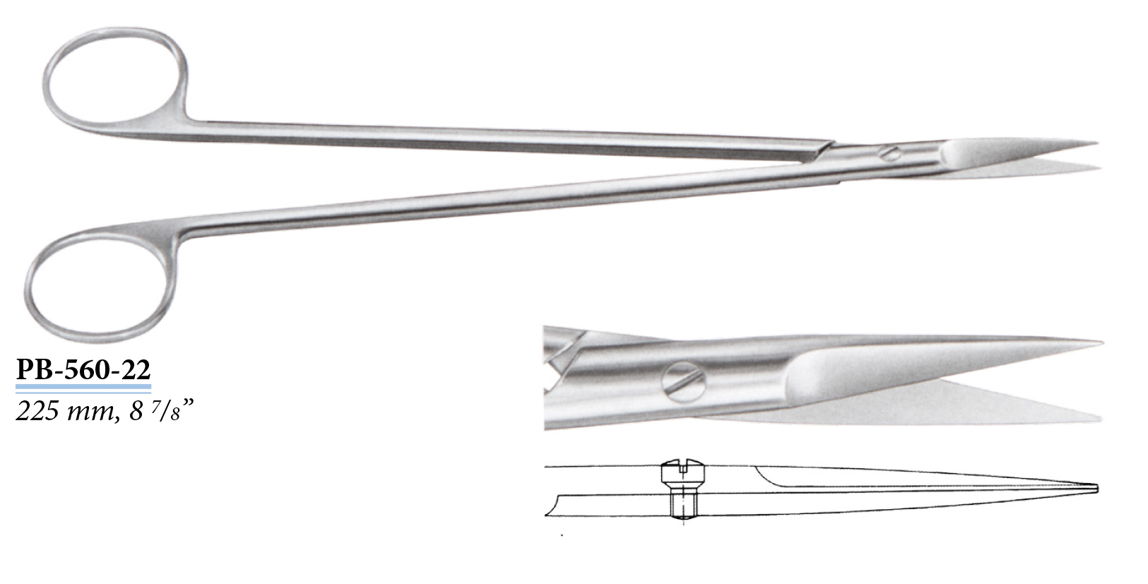 PB-560-22 Érsebészeti olló, egyenes, hegyes-hegyes, 225 mm