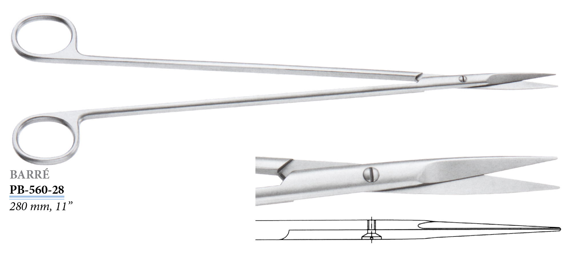 PB-560-28 Barré érsebészeti olló, egyenes, hegyes-hegyes, 280 mm
