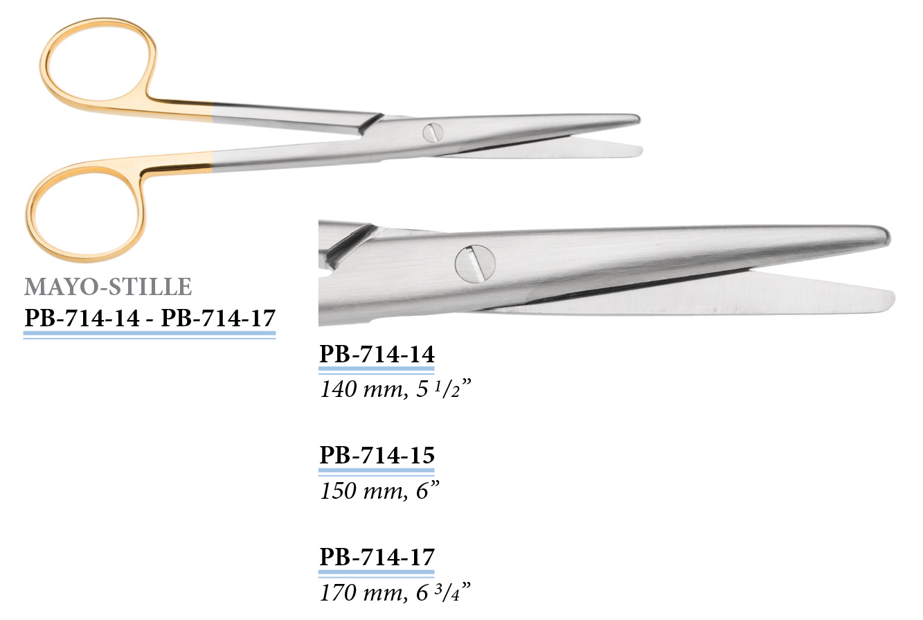 PB-714-15 Mayo-Stille preparáló olló, egyenes, 150 mm, keményfémbetétes