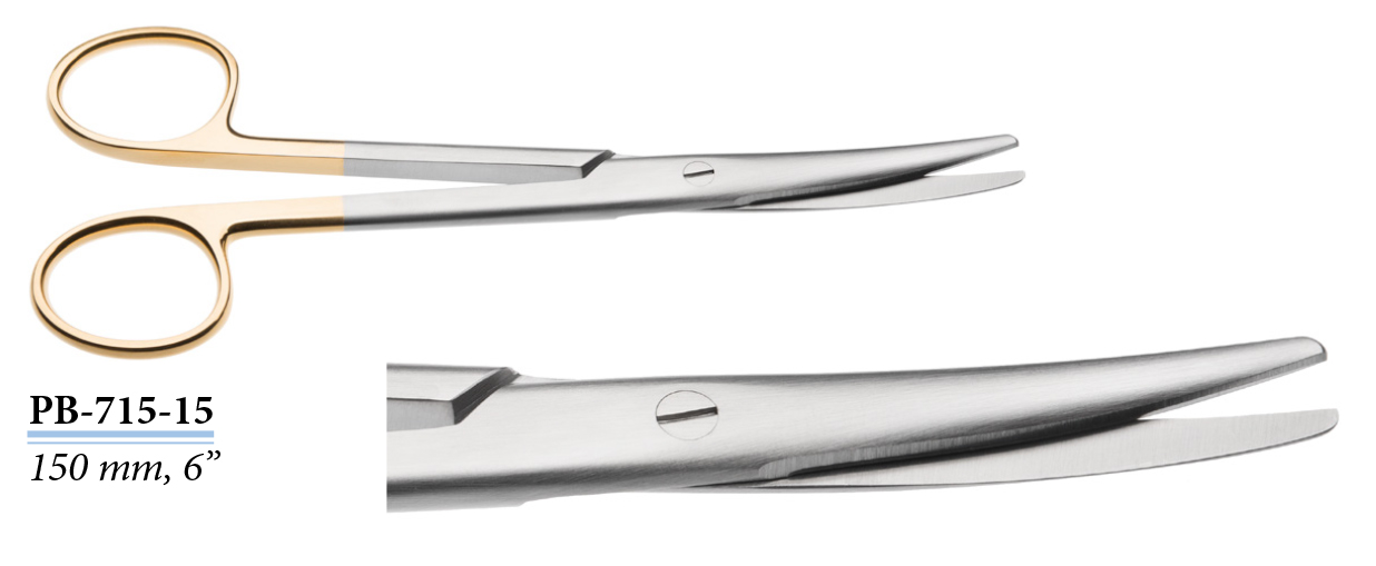 PB-715-15 Mayo-Stille preparáló olló, hajlított, 150 mm, keményfémbetétes