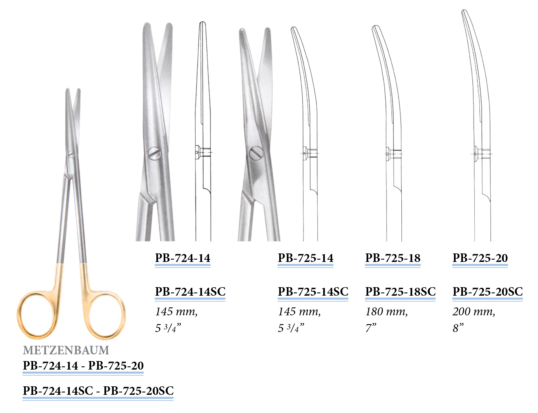 PB-728-20SC Metzenbaum preparáló olló, egyenes, 200 mm, keményfémbetétes, Super Cut