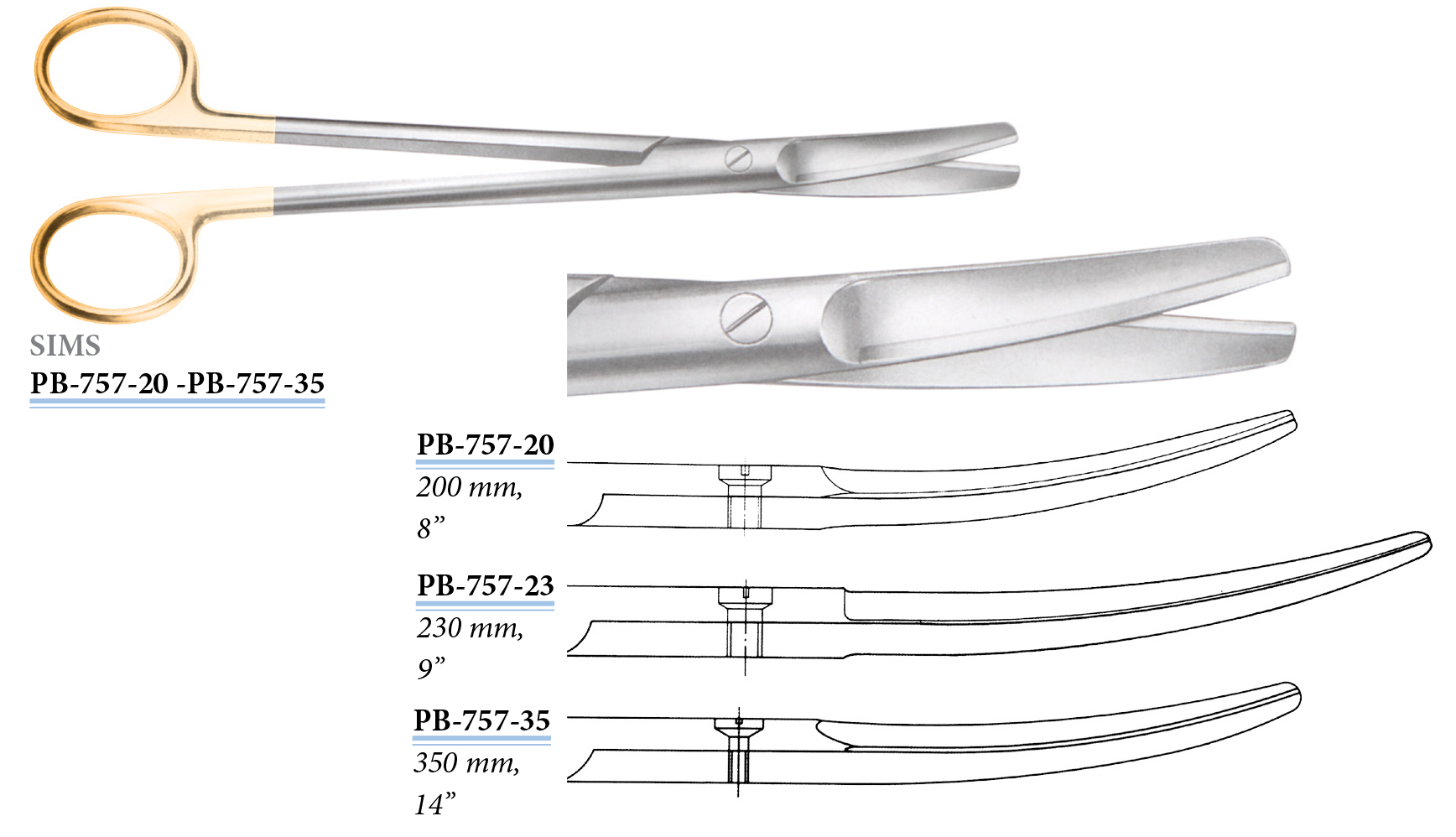 PB-757-20 Sims uterus olló, hajlított, 200 mm, keményfémbetétes
