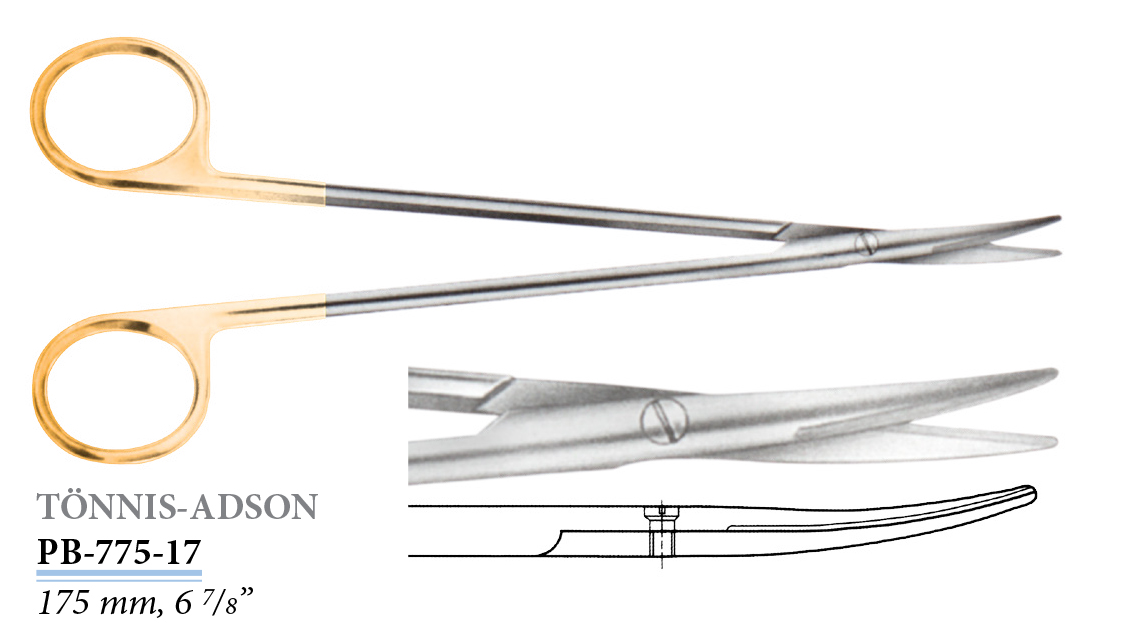 PB-775-17 Toennis-Adson olló hajlított, 175 mm, keményfémbetétes