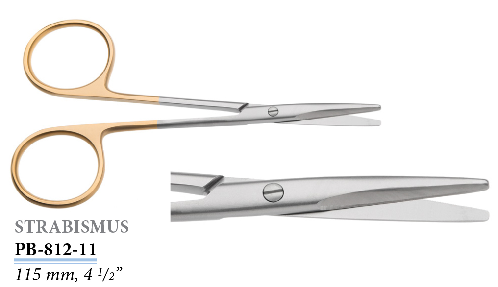 PB-812-11 Stabismus olló, egyenes, 115 mm, keményfémbetétes
