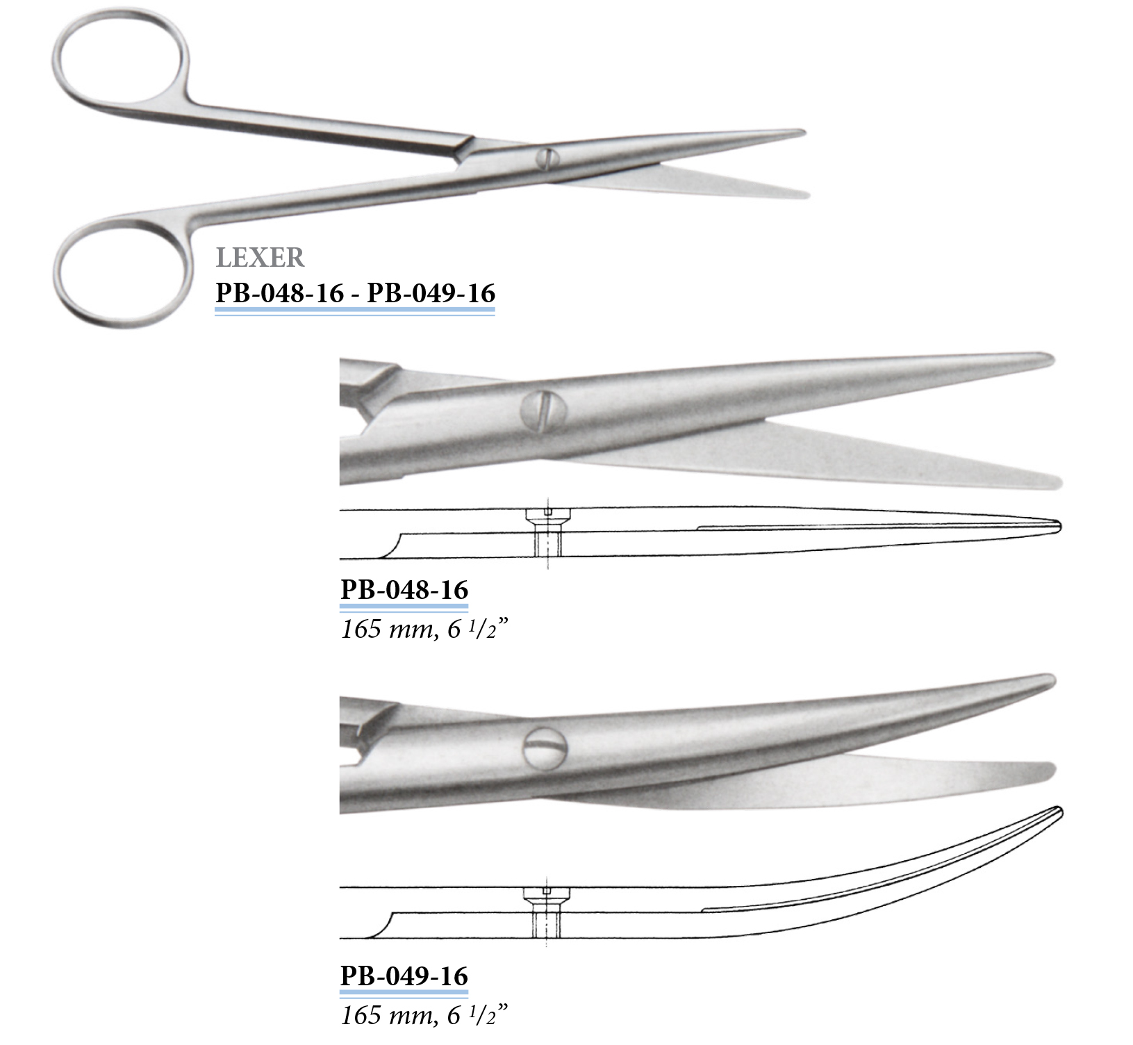 PB-049-16 Lexer preparáló olló, hajlított, 165 mm