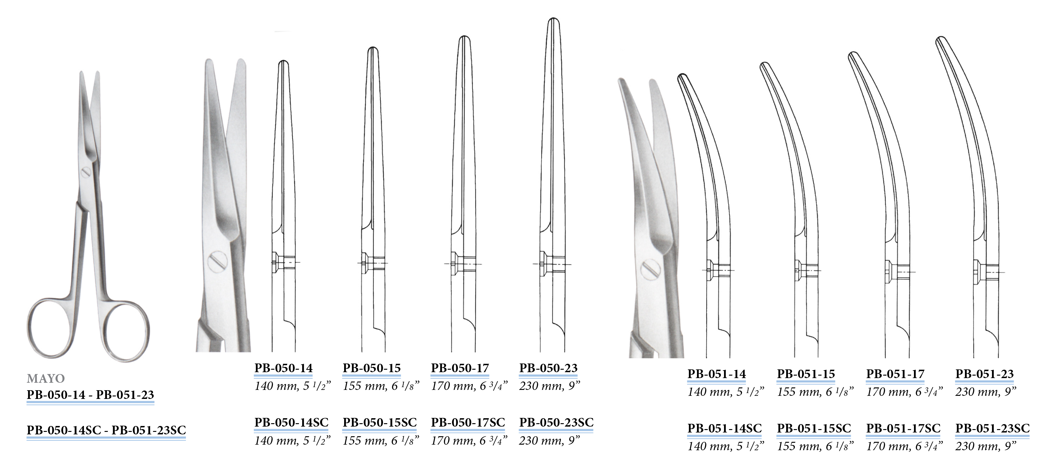 PB-050-14 Mayo preparáló olló, egyenes, 140 mm