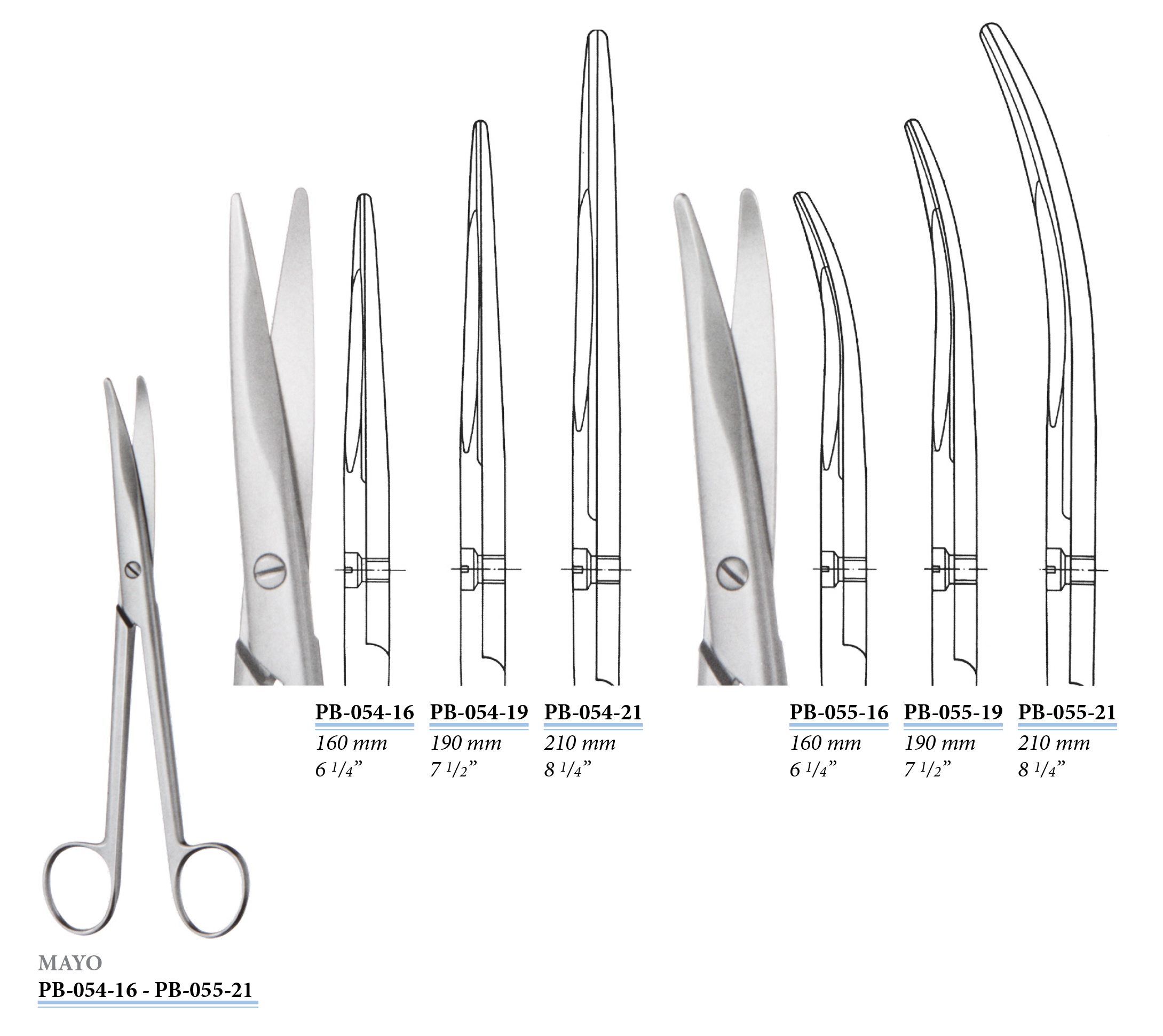 PB-054-21 Mayo preparáló olló, egyenes, 210 mm