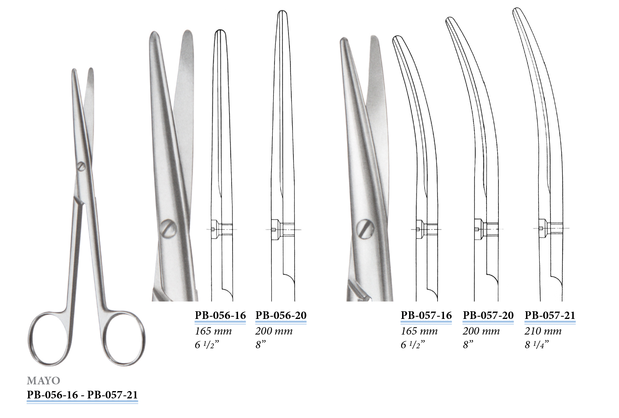 PB-056-20 Mayo preparáló olló, egyenes, 200 mm