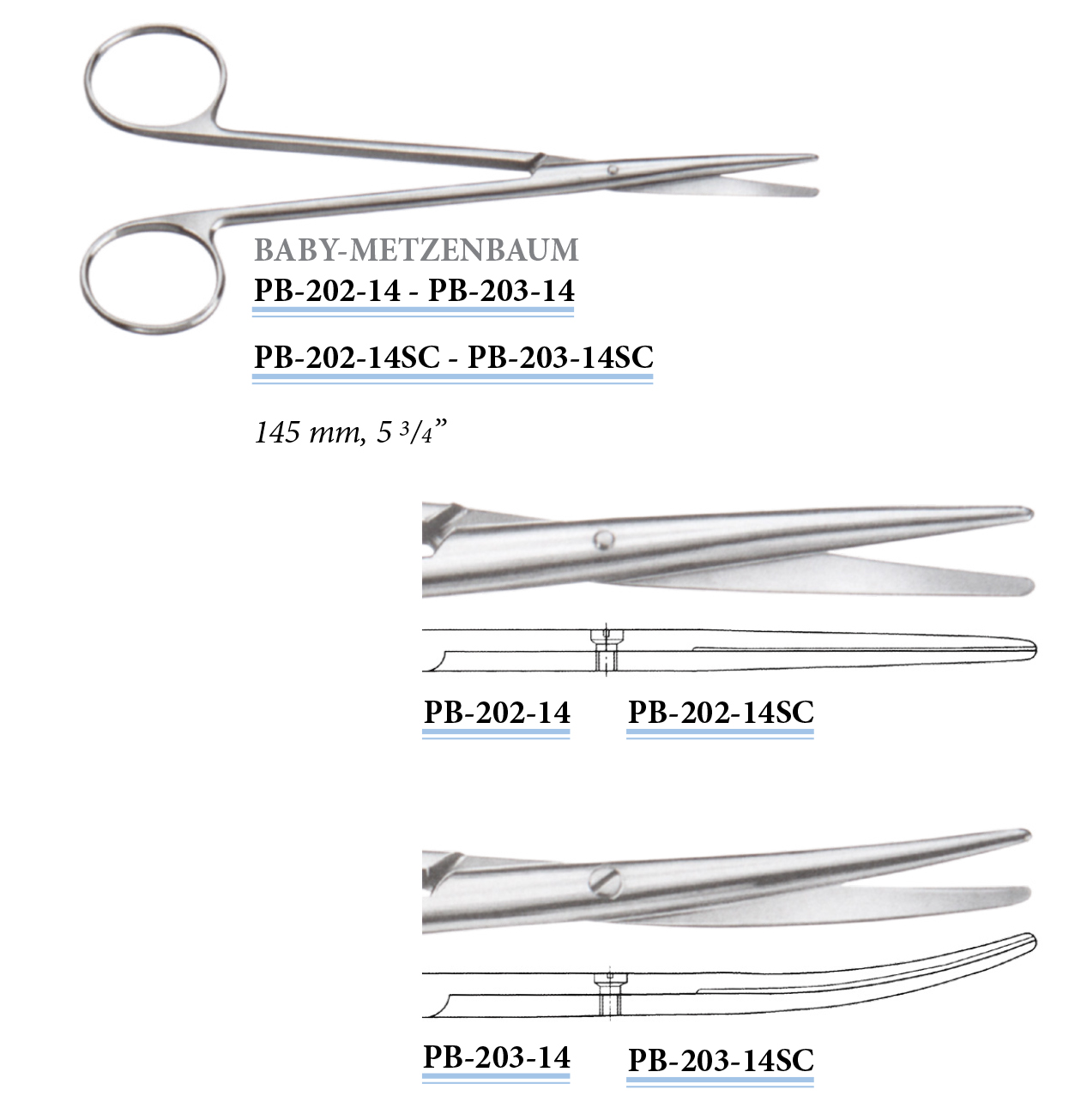 PB-202-14SC Baby-Metzenbaum preparáló olló, egyenes, 145 mm, Super Cut