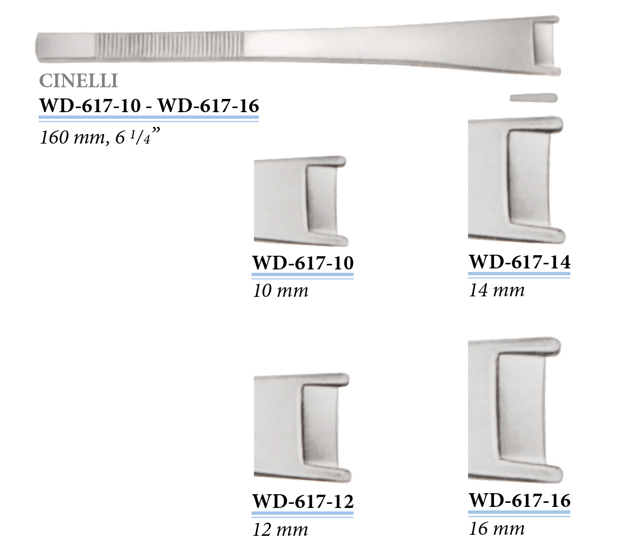 WD-617-14 Cinelli csontvéső, 14 mm, 160 mm