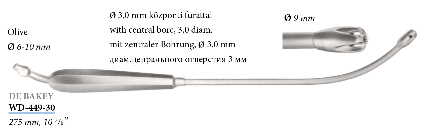 WD-449-30 De Bakey szívócsö, d=9 mm, 275 mm