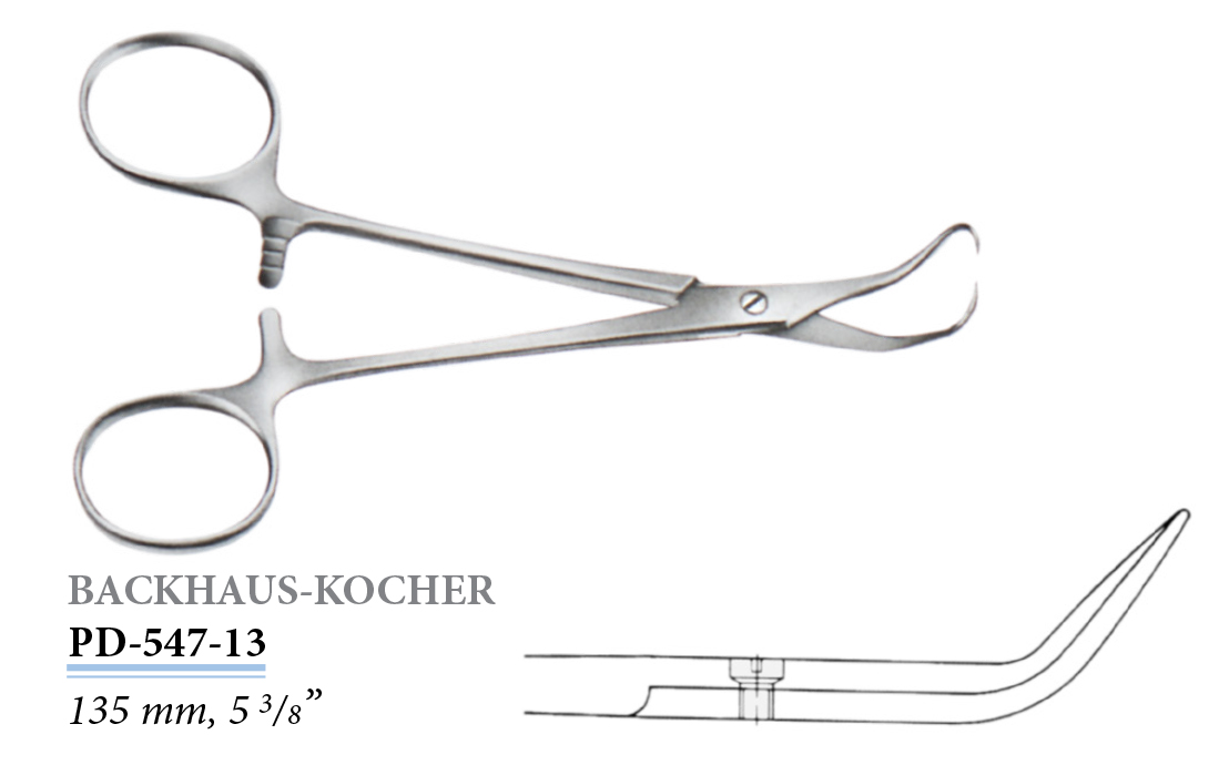 PD-547-13 Bachaus-Kocher kendőfogó, 135 mm