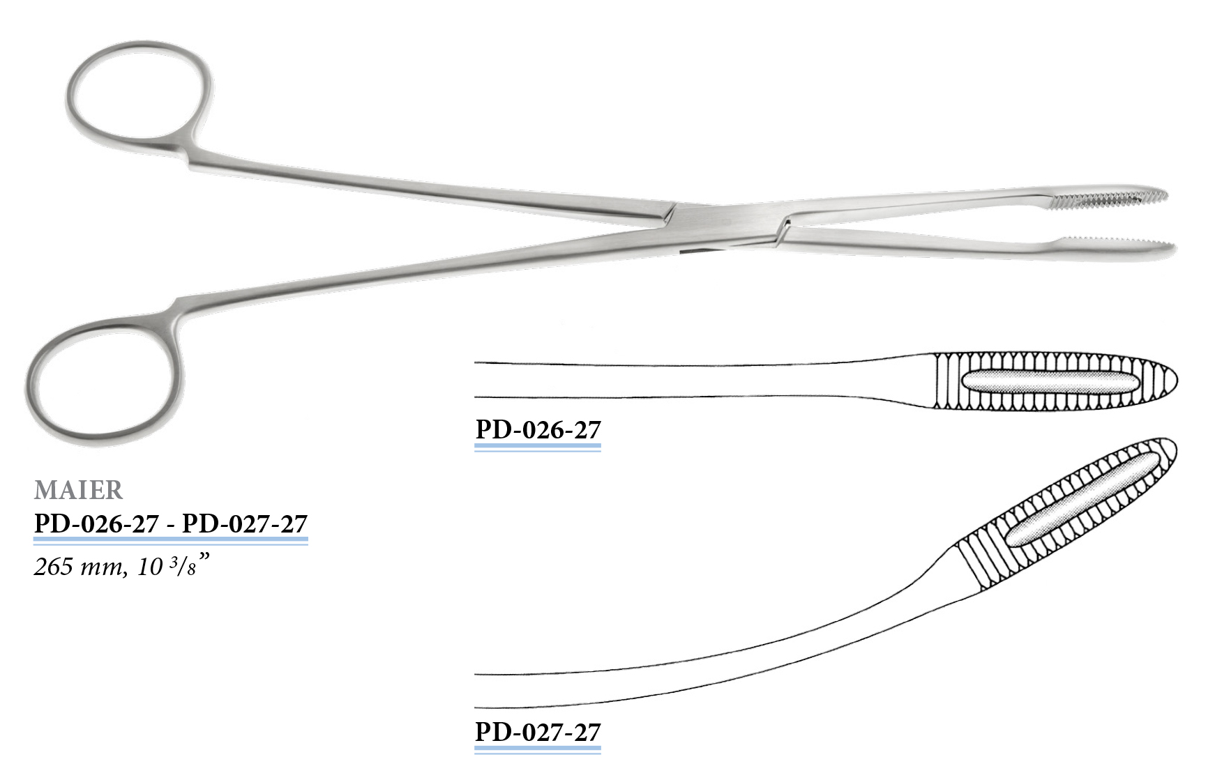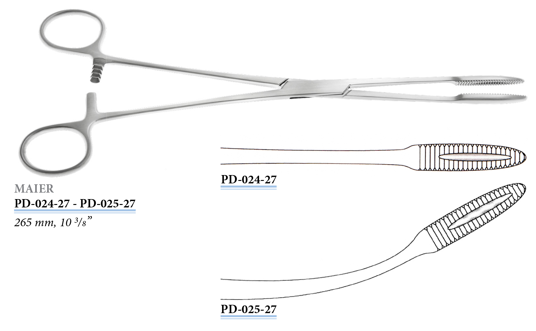 PD-026-27 Maier tampon- és szövetfogó, egyenes, 265 mm