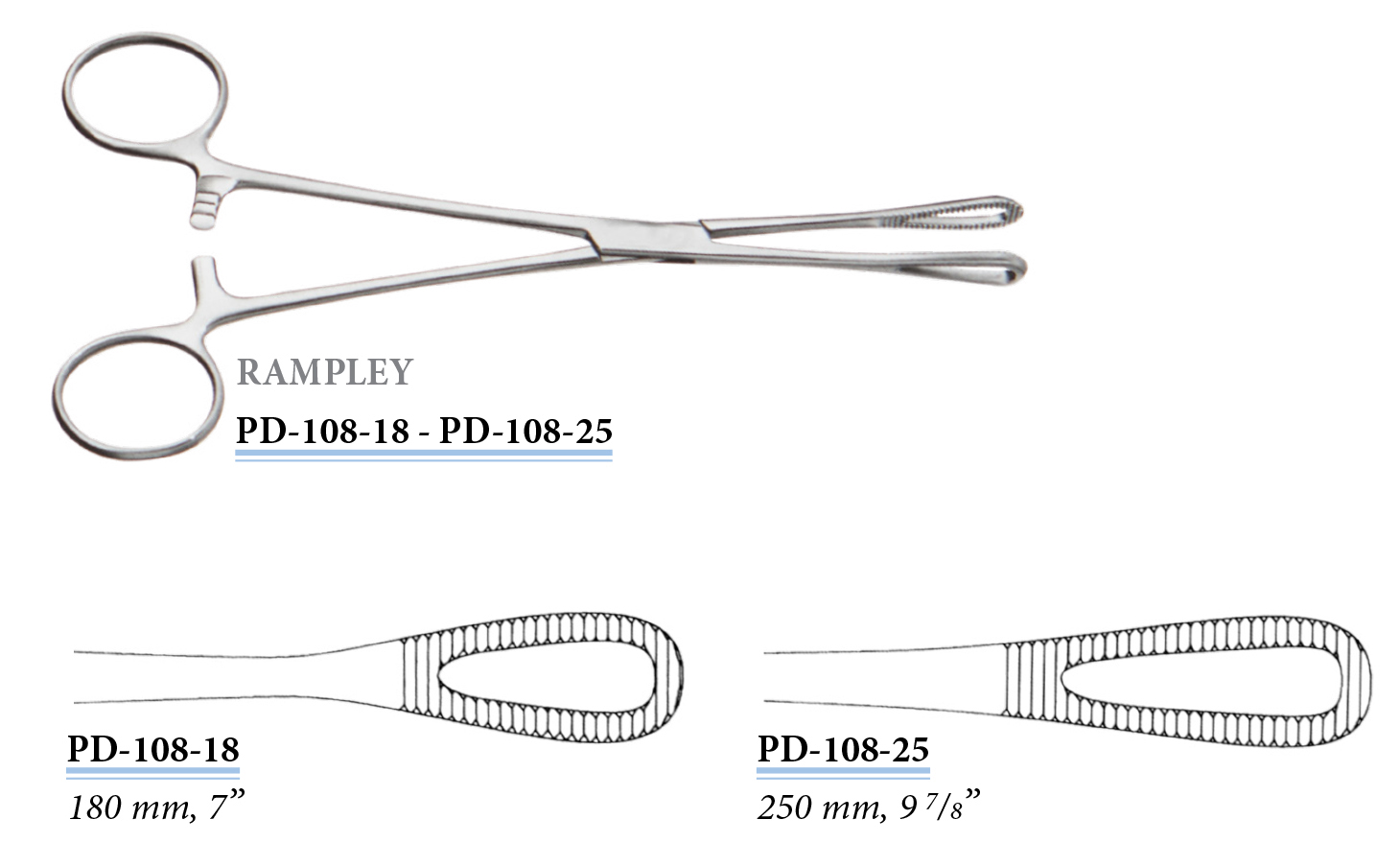PD-108-25 Rampley tampon- és szövetfogó, egyenes, 250 mm