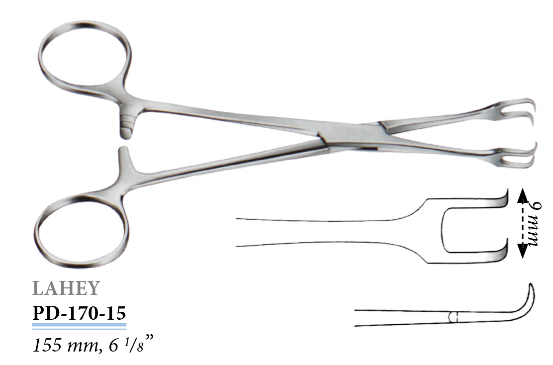 PD-170-15 Lahey szerv- és szövetfogó, 2 ágú, 155 mm