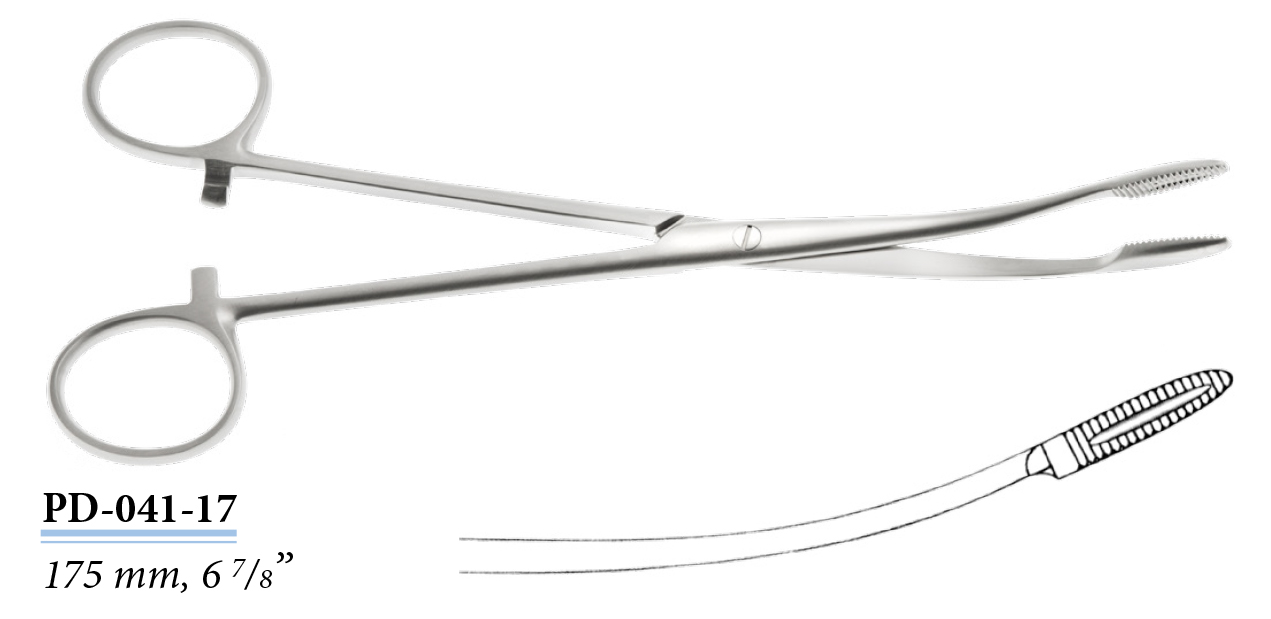 PD-071-27 Ulrich tampon- és szövetfogó, hajlított, 265 mm
