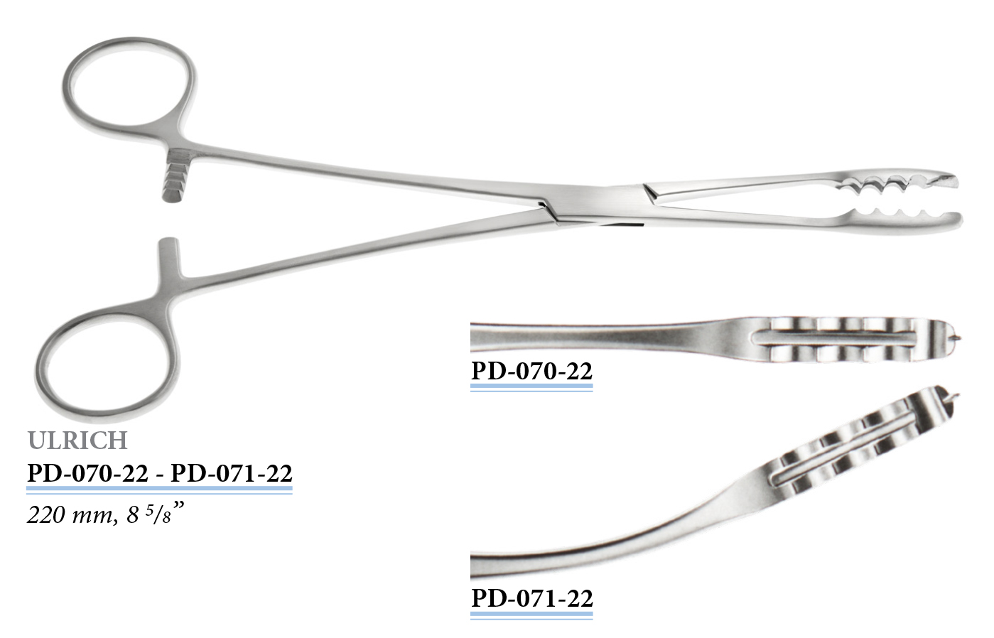 PD-070-22 Ulrich tampon- és szövetfogó, egyenes, 220 mm