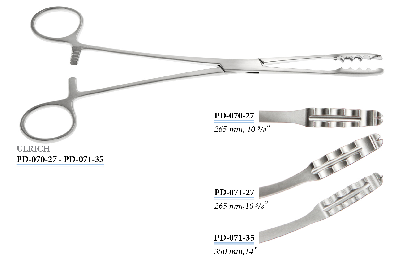 PD-070-27 Ulrich tampon- és szövetfogó, egyenes, 265 mm