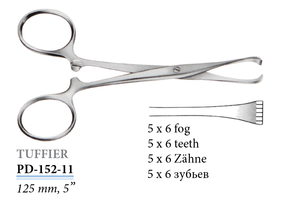 PD-152-11 Tuffier horgasfogó, 5x6 foggal, 125 mm