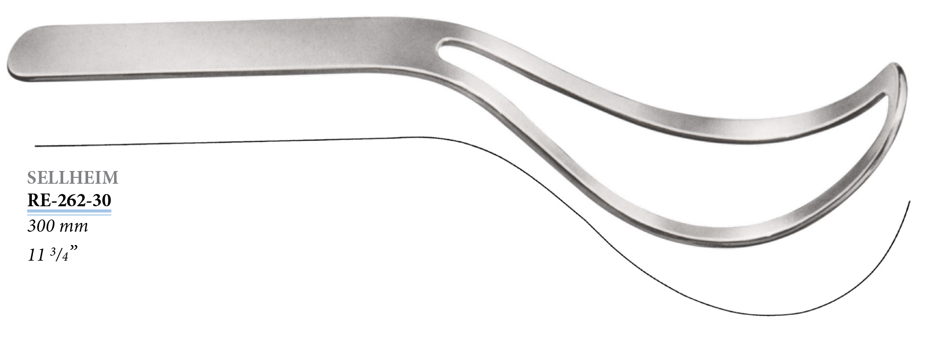 RE-262-30 Sellheim szülészeti kanál, 300 mm